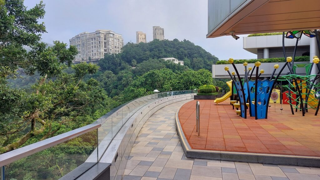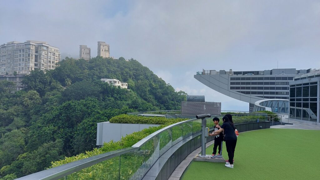 - 落車上樓即是山頂廣場。有商場餐廳樓頂及各層邊緣建有觀景台。