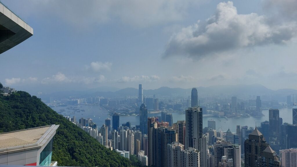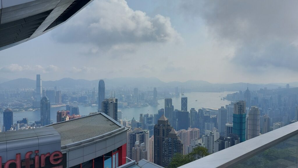- 行隔離的淩宵閣,可看到維多利亞港及九龍半島。