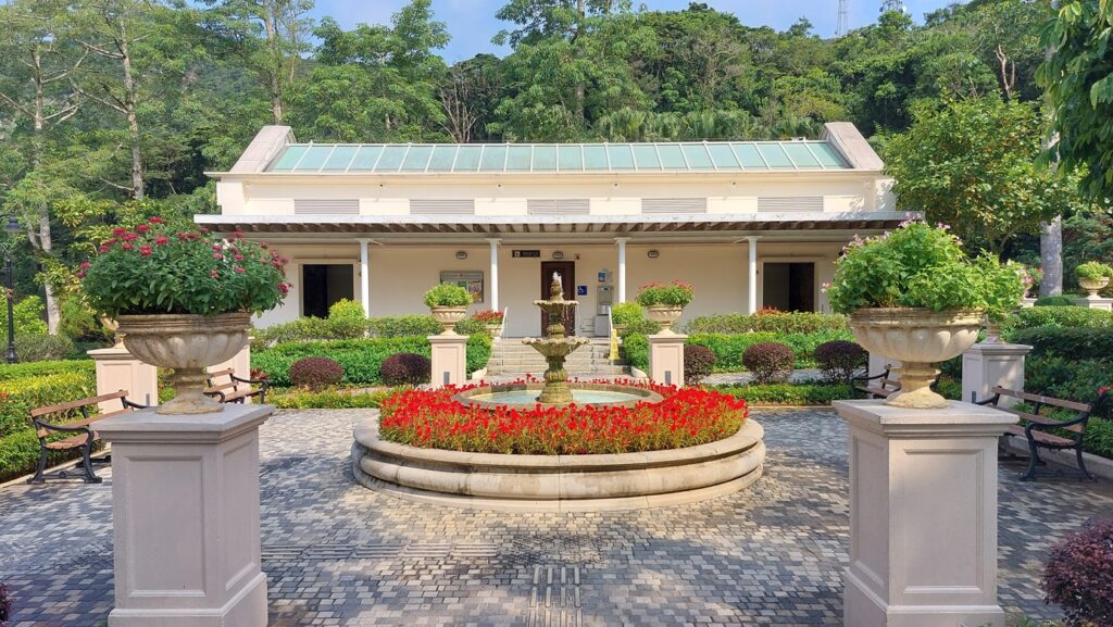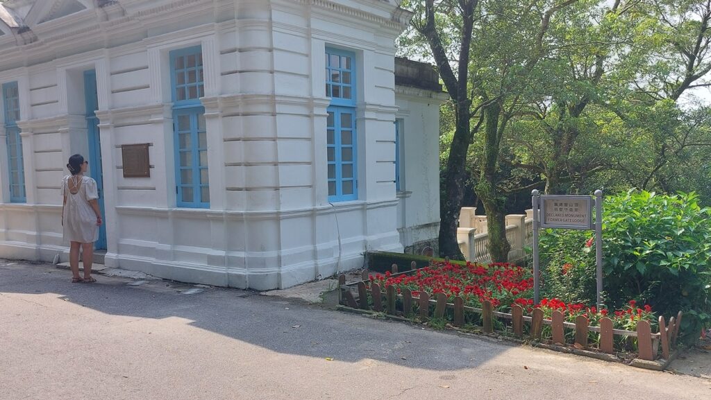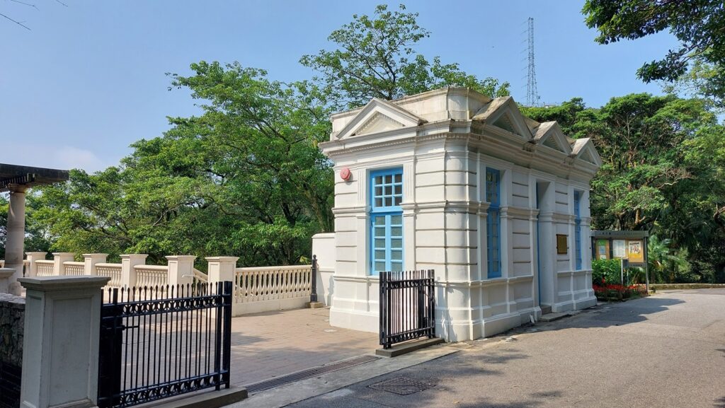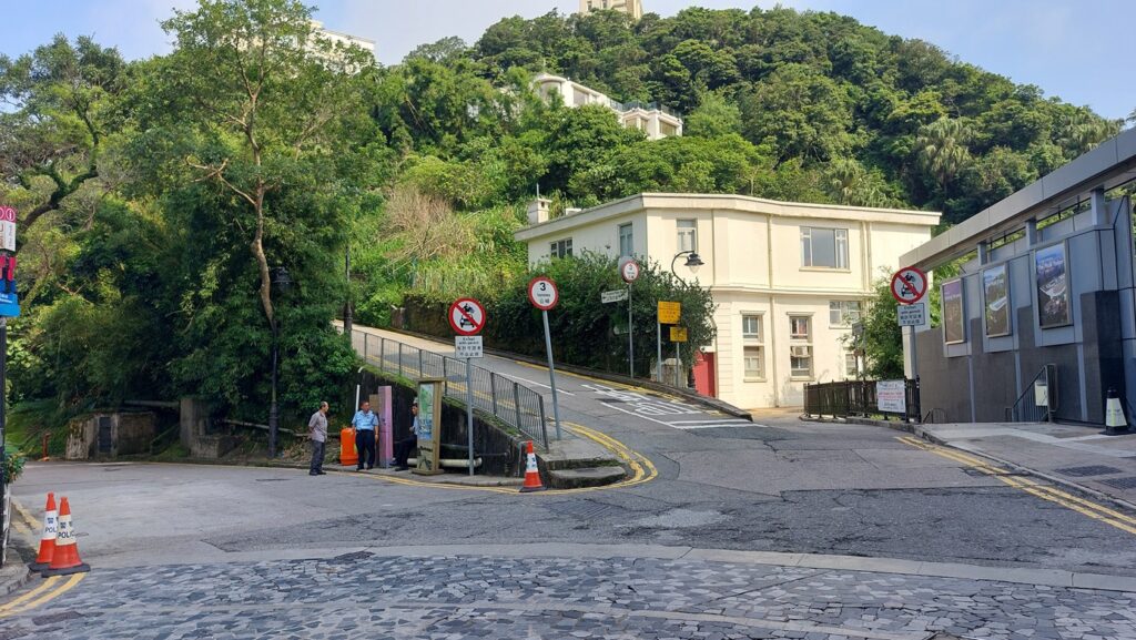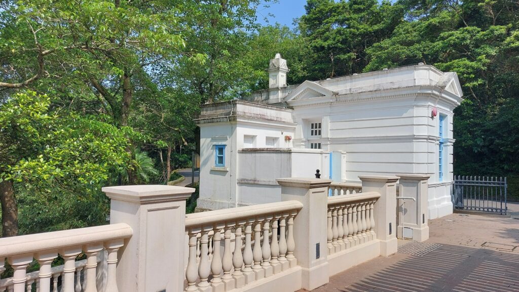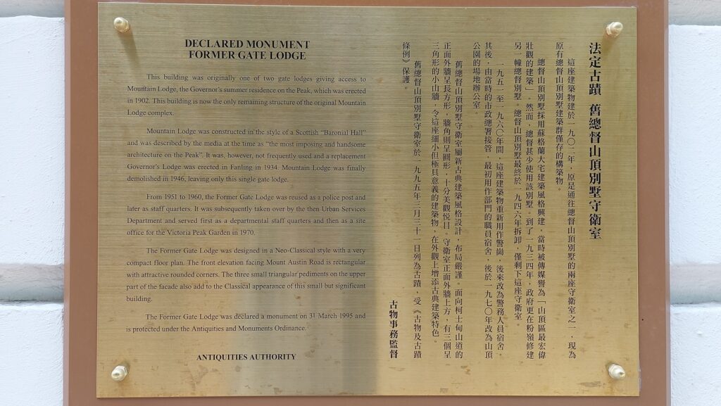- 一路向上,會看到路邊的舊總督山頂別墅守衛室,西式建築。再向上就是山頂公園範圍了。