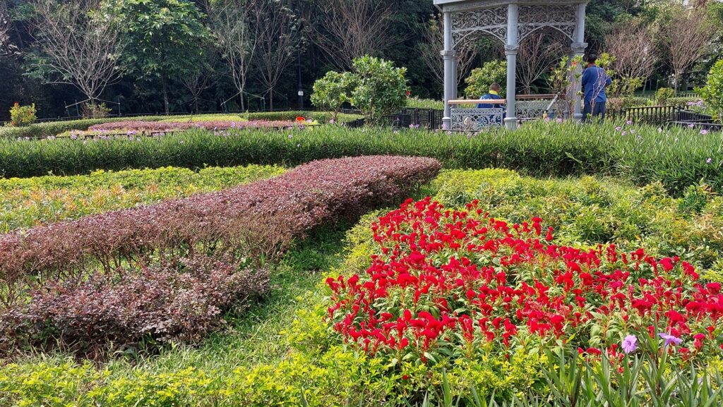 - 山頂亭休憩會,上廁所,從另一邊沿夏力道健身徑下山,至夏力道環迴休憩處。休憩並補充飲水。