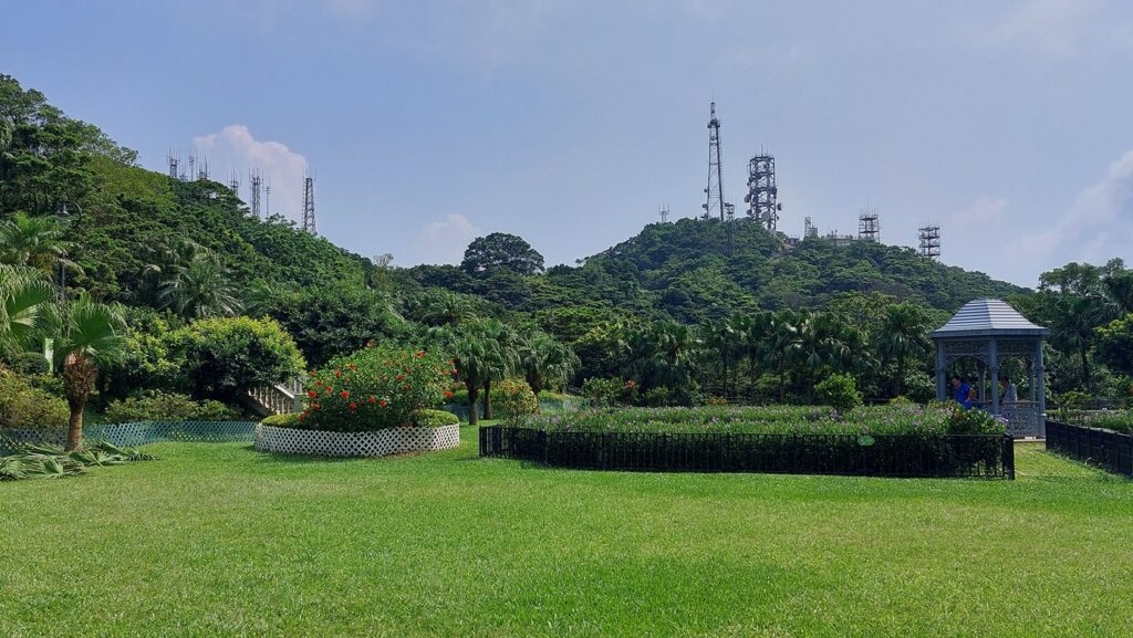 - 會先看到漂亮的花園。有一個顯眼的休息亭,再向上就是頂峰的電波發射站,只能遠觀。