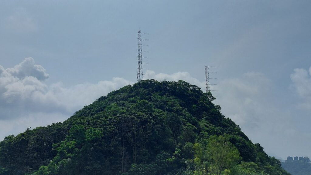 從凌霄閣出發,要爬山了。就是下圖中的兩座山,太平山和西高山。