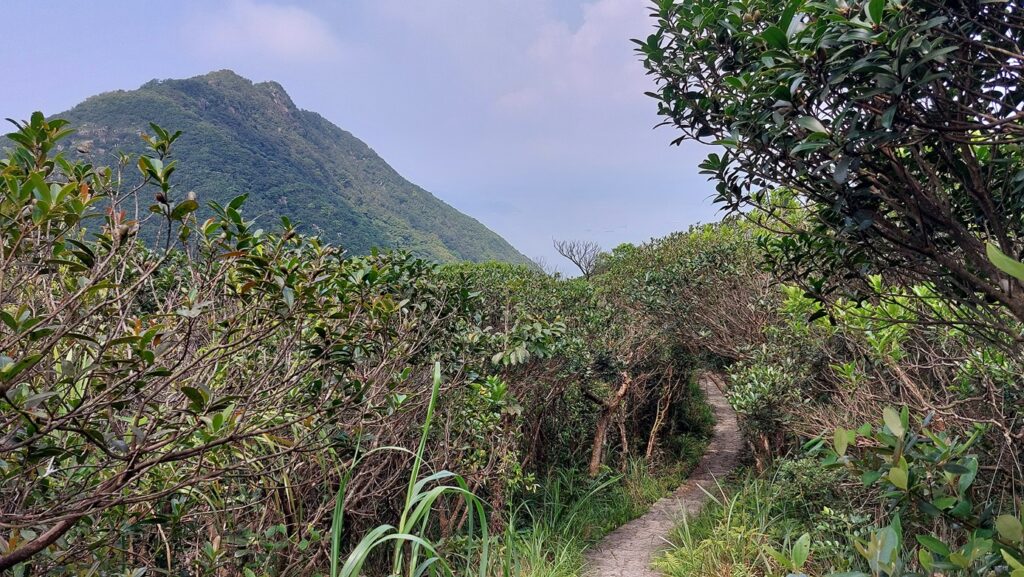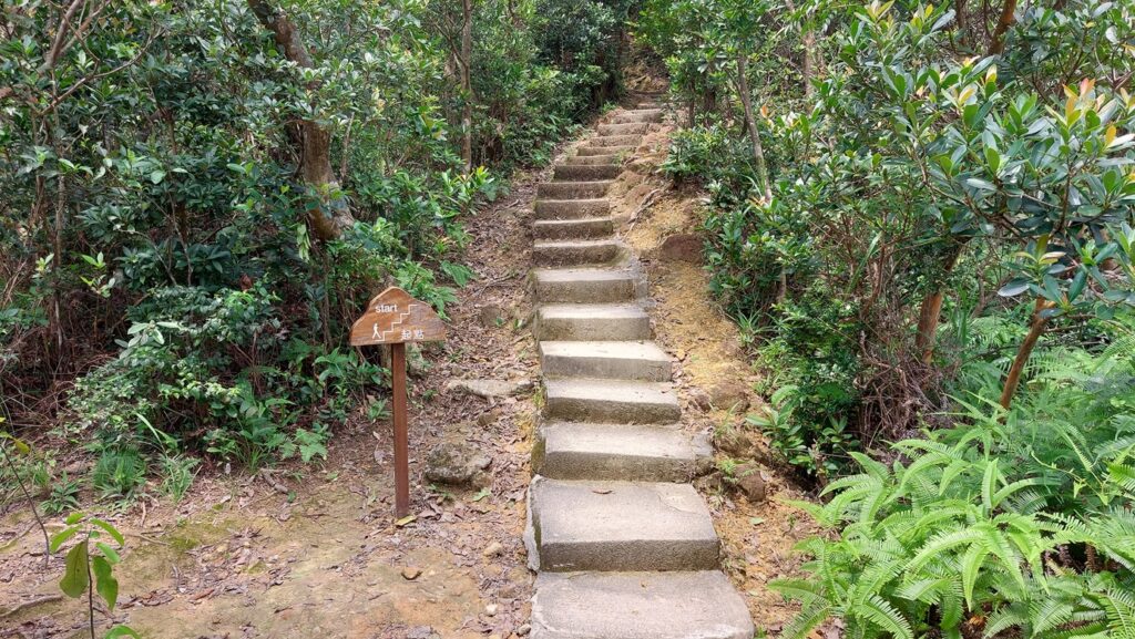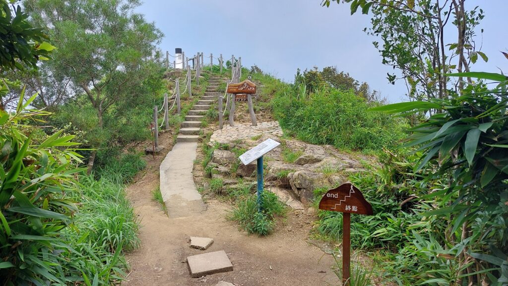 準備下山。要從另一邊即西邊,沿夏力道健身徑往下,前段較平緩後段較陡峭的梯級路。