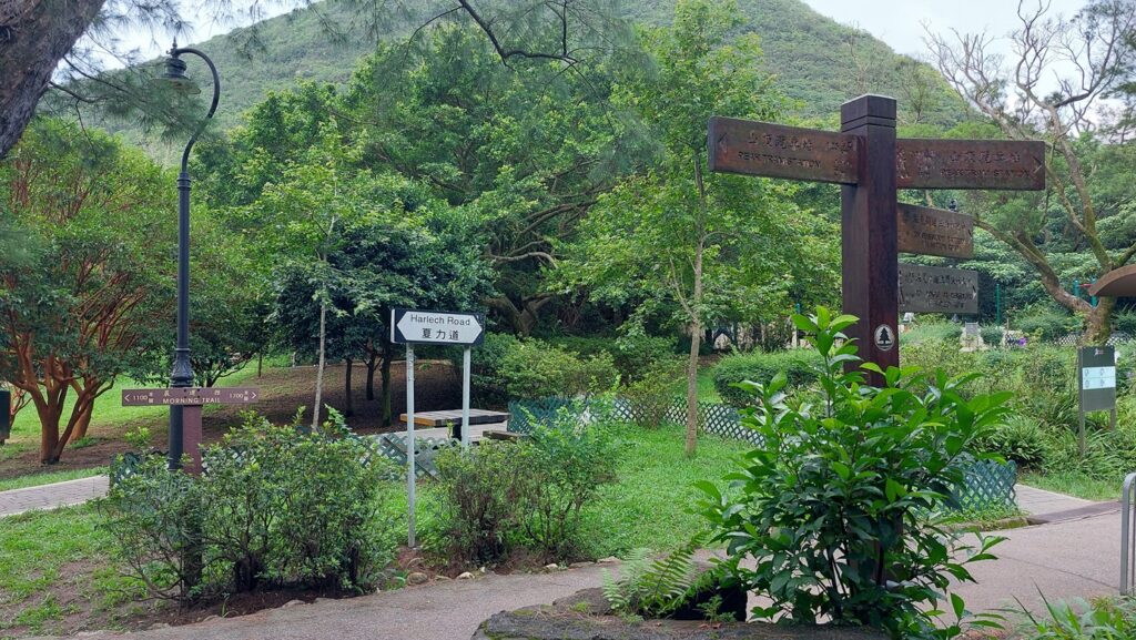 - 由淩宵閣前行,到分岔路口,按路牌指示,从中间条路即柯士甸山道上山顶。