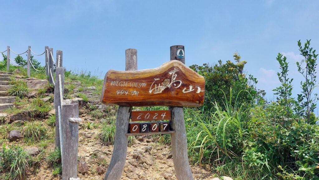 編輯網頁時才突然發現,西高山的標示牌上,除了標高494m,還有日期,為2024-08-07,這是我登山當時日期。難道這是個日期鐘?