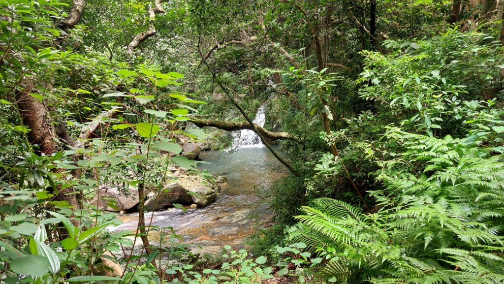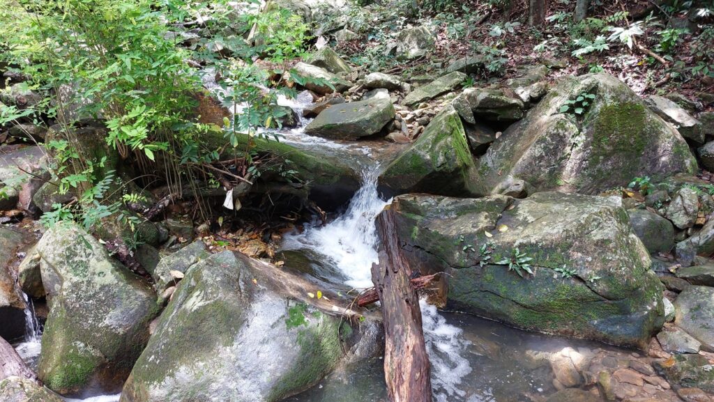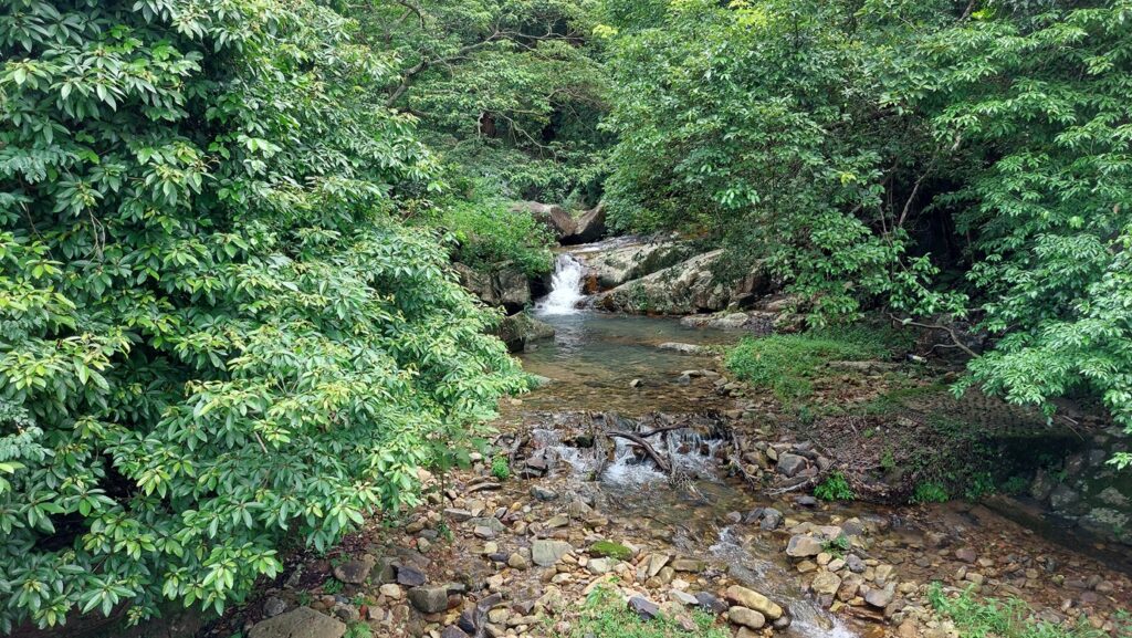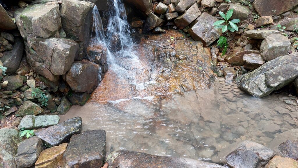 泥石徑,樹林,不時傳來蟲鳴鳥叫,還有山澗溪水聲,讓人沉浸在大自然之中。遠離城市的喧囂,暫時忘卻現實的煩惱,也甚是難得。