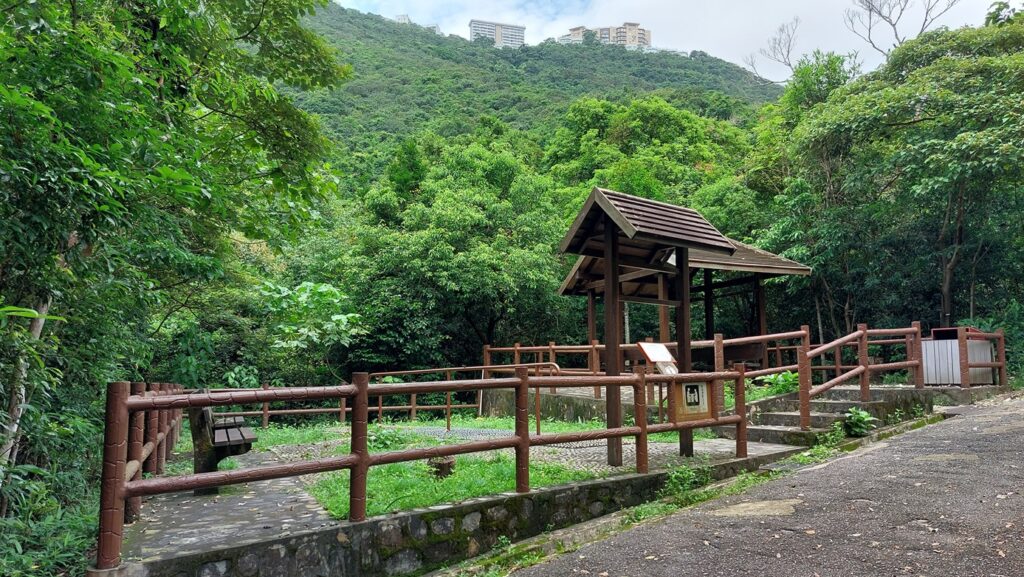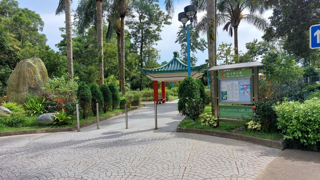 沿香港仔水塘道一段陡峭的上坡,來到灣仔峽公園,對面就是巴士站。