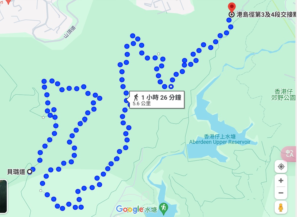 - 路線︰ 貝璐道➡田灣山腰➡香港仔水塘道➡灣仔峽