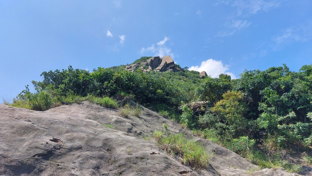 回頭望,金馬倫山。剛從上坡的中峽道,橫過山腰