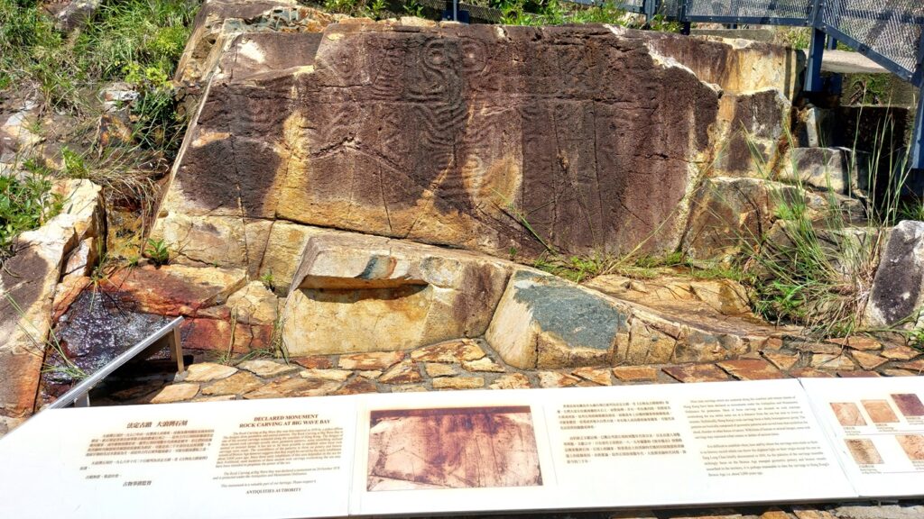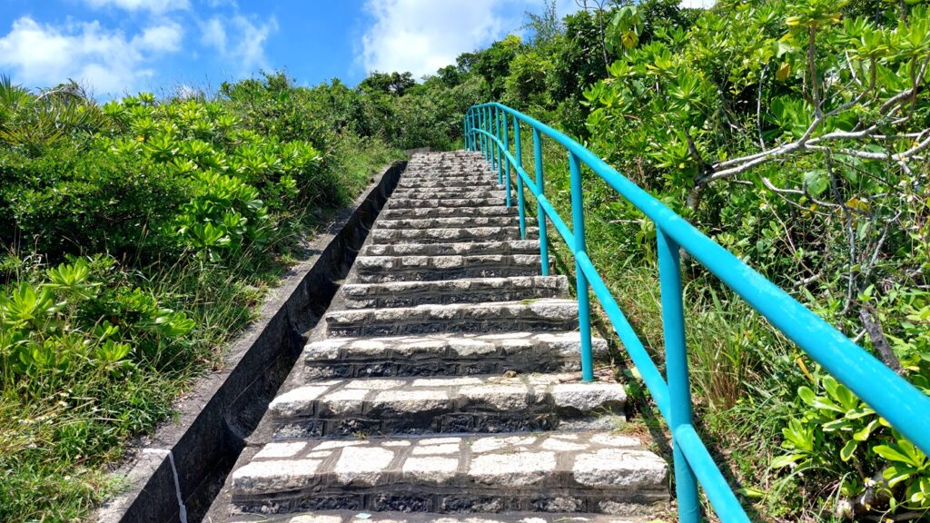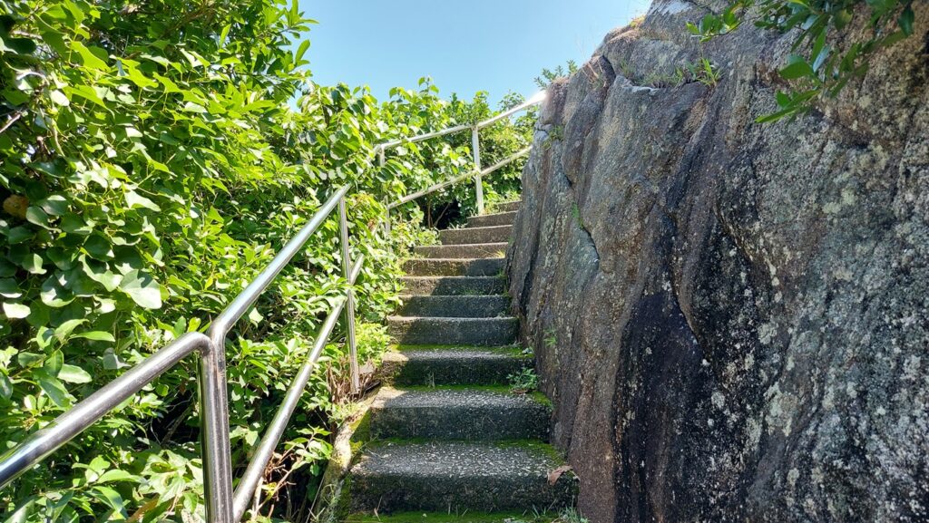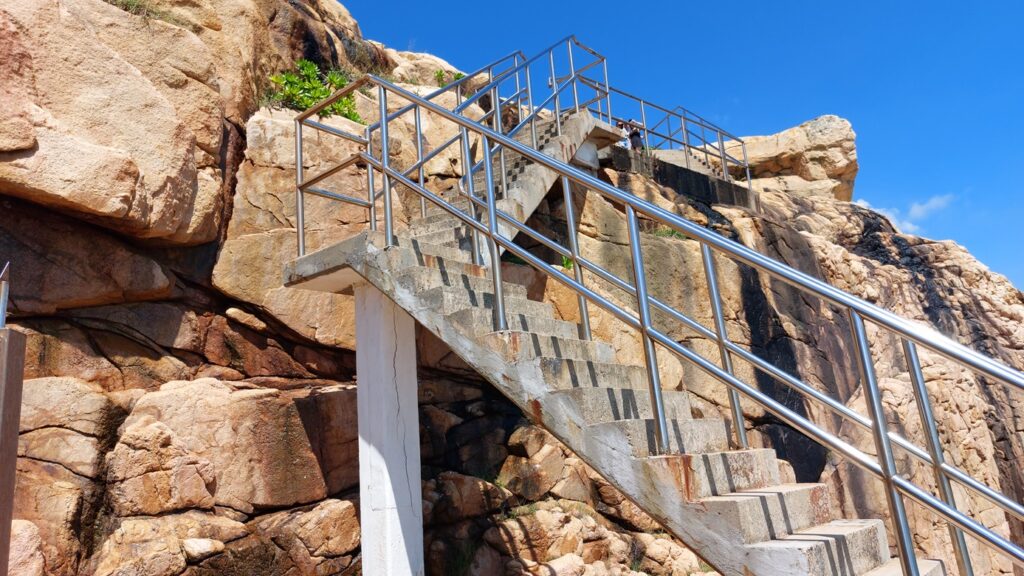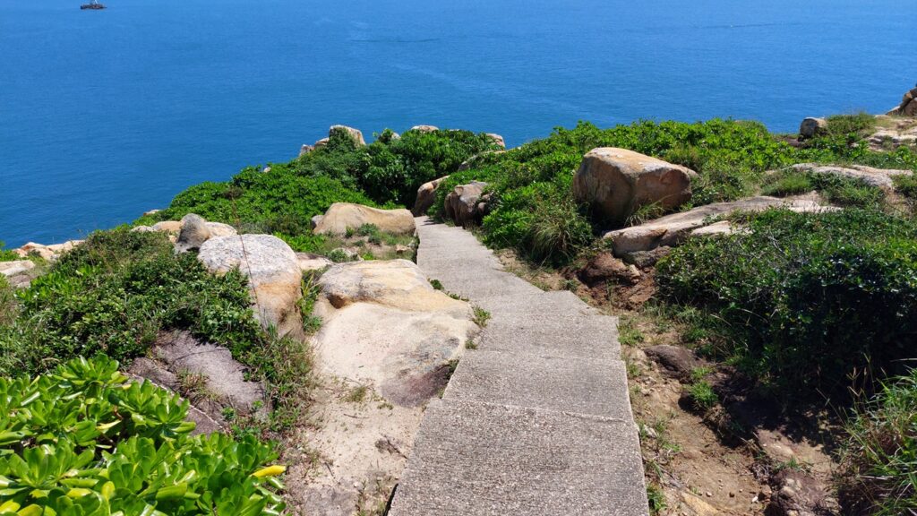 由大浪灣沙灘左側過橋,很快就到大浪灣石刻。然後就是上山的千級天梯,途中有兩個涼亭可休憩。