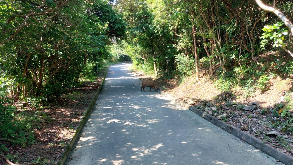 由哥連臣道花園,沿龍躍徑至終點小西灣。龍躍徑是寬闊的石屎路面,平緩向下。有趣的是,遇野豬橫過馬路,可遇不可求。