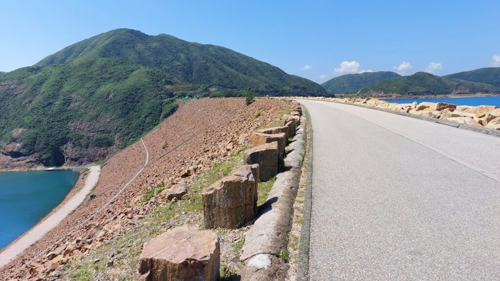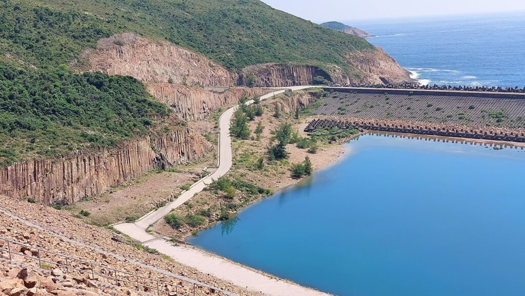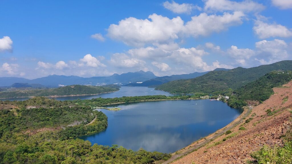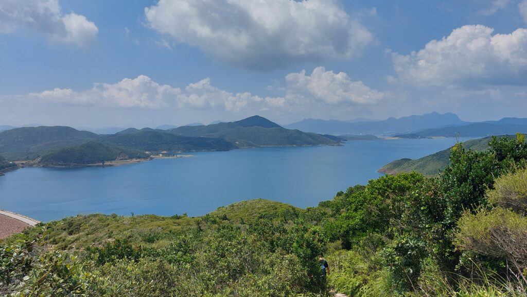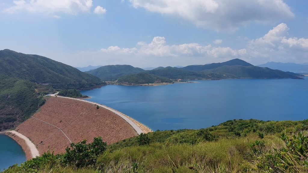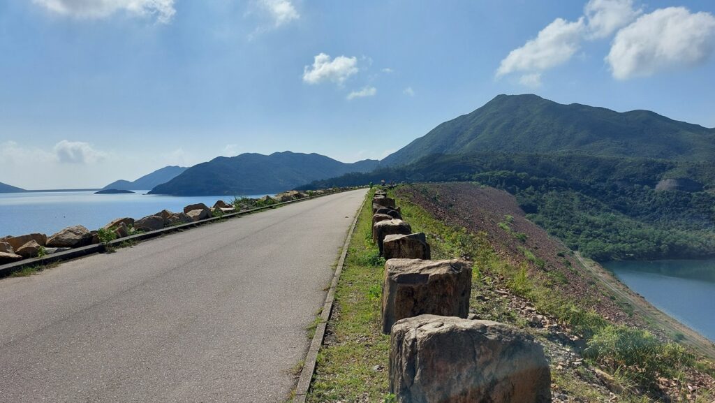 沿萬宜路前行,不遠便可看見香港儲水量最大的萬宜水庫。夏時,陽光照耀,水庫散發迷人的水藍色澤。此後會經過一個休息點,再抵達水庫的西壩。此處是觀賞水庫的首個最佳位置。