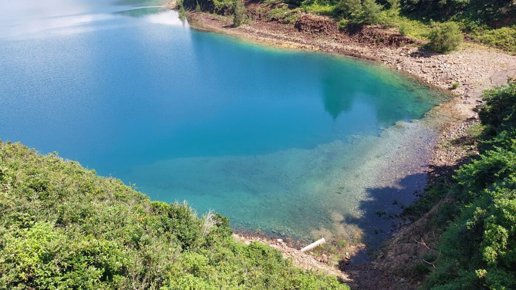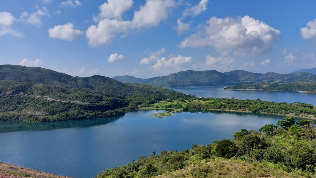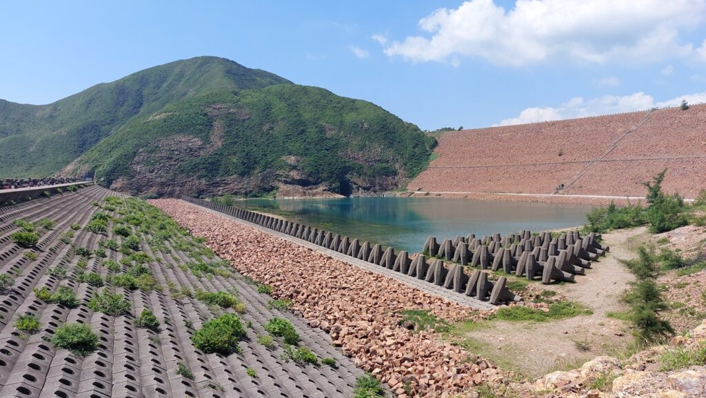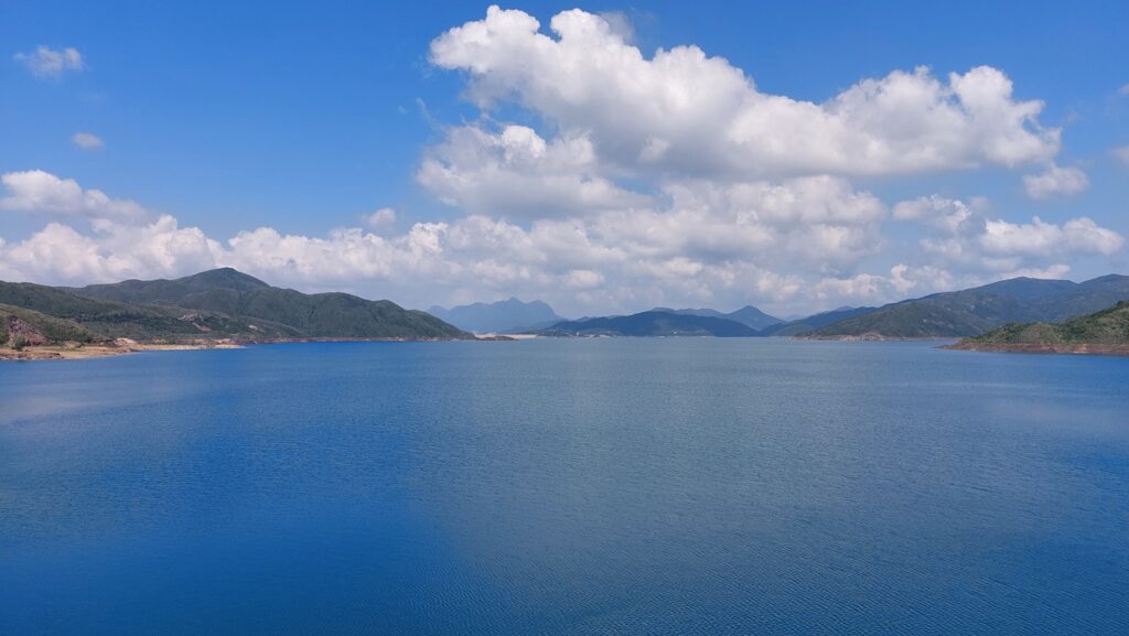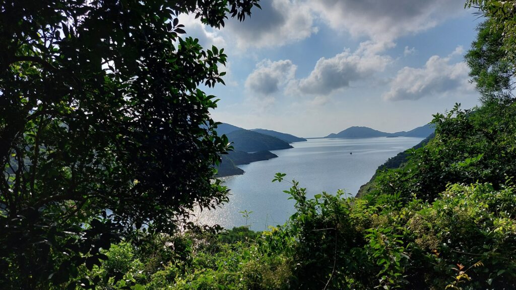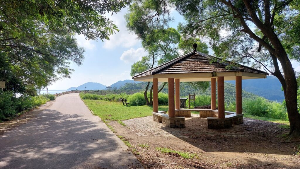 沿萬宜路前行,不遠便可看見香港儲水量最大的萬宜水庫。夏時,陽光照耀,水庫散發迷人的水藍色澤。此後會經過一個休息點,再抵達水庫的西壩。此處是觀賞水庫的首個最佳位置。