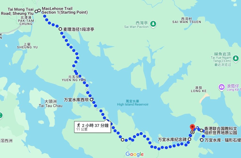 - 路線︰麥徑起點➡萬宜水庫西壩➡東壩➡地質公園➡標尖角➡東壩