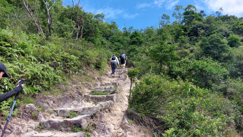 上山開始段多是石級,到半山處涼亭休憩下。後半段上山路就難許多,既斜又崎嶇不平,好在爬上途中還有靚景。