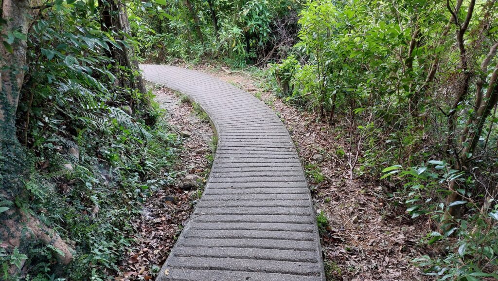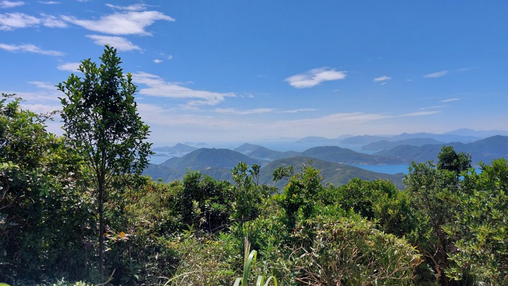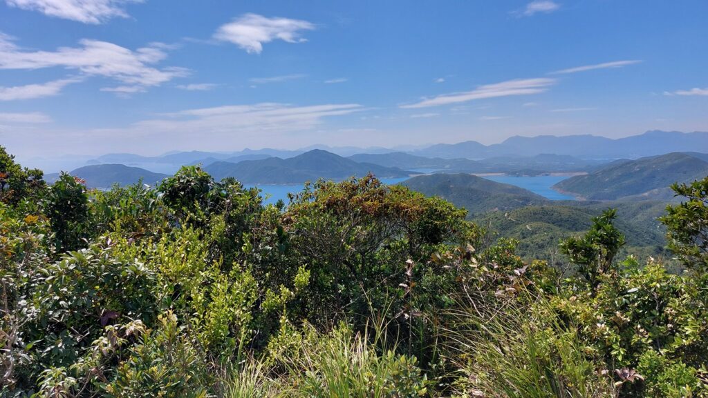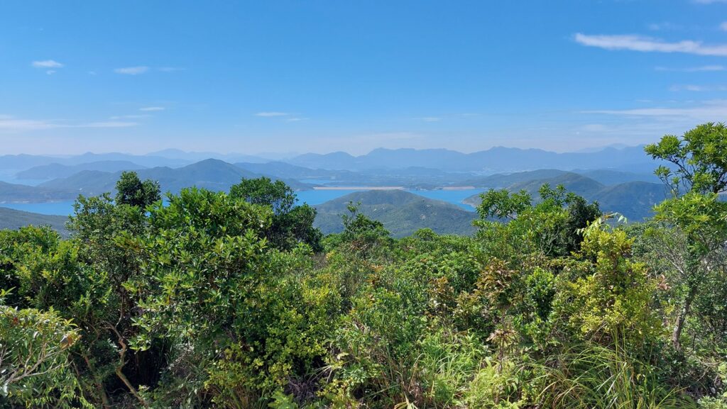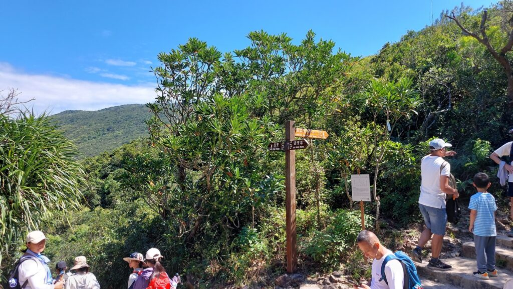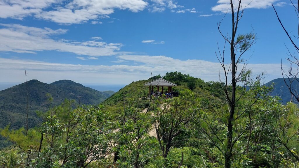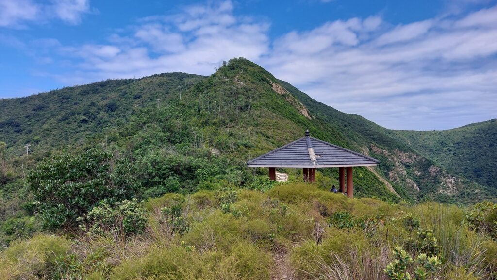 除了浪茄的景觀,還能遠遠看到萬宜水庫。行到第二個涼亭,前少少就到山頂