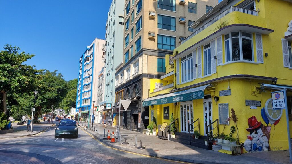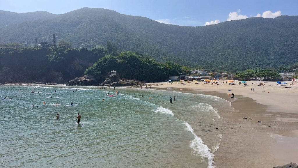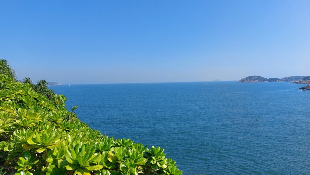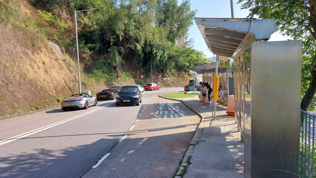 沿石澳道行向大浪灣,注意此段馬路無人行道,留意過往車輛。一路行到大浪灣,在此可補給或稍事休息。