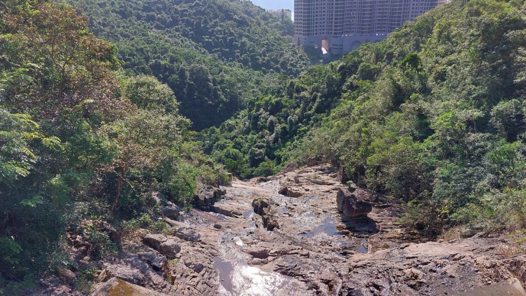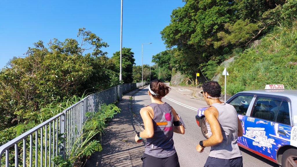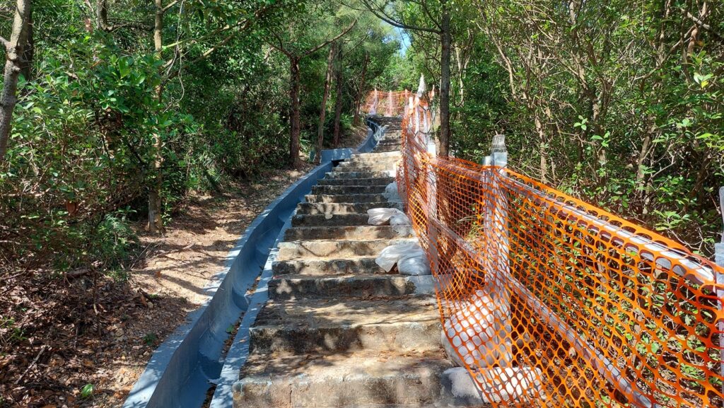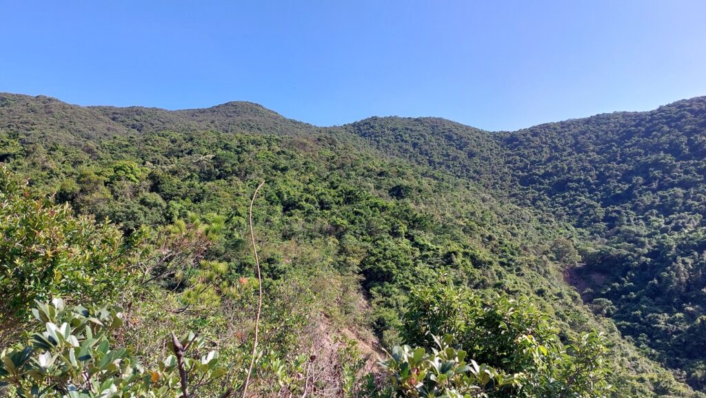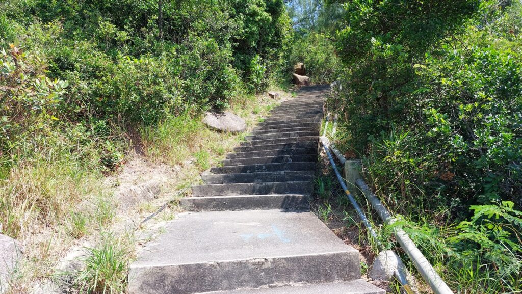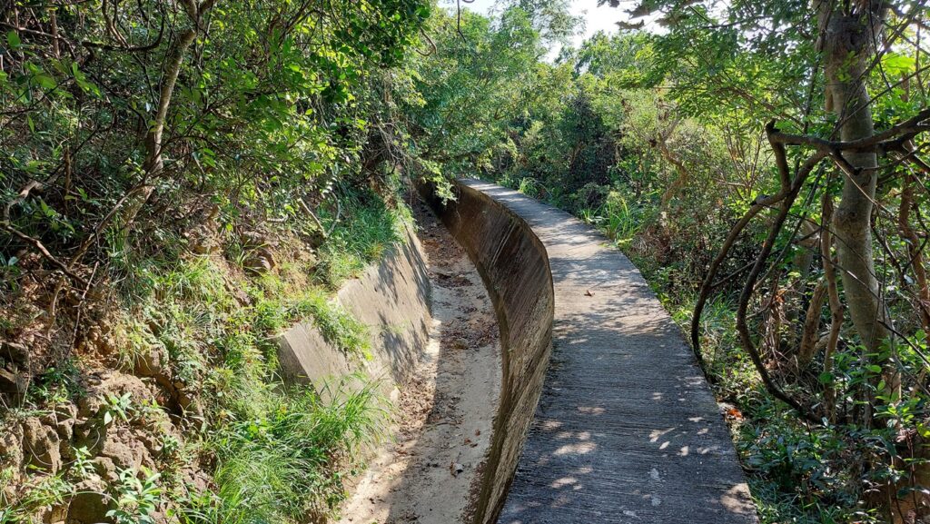 由大潭篤水塘大壩行向港島徑七段起點,又是一段長長的引水道之旅。直至土地灣,上斜至石澳道。沿石澳道馬路一路前行至大浪灣。補給後開始登山了,向砵甸乍山進發。
