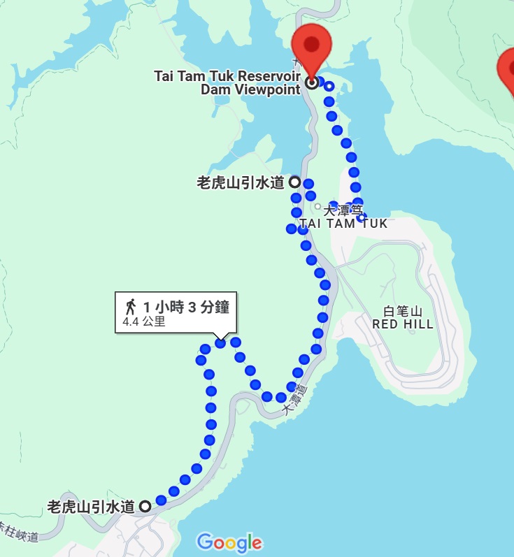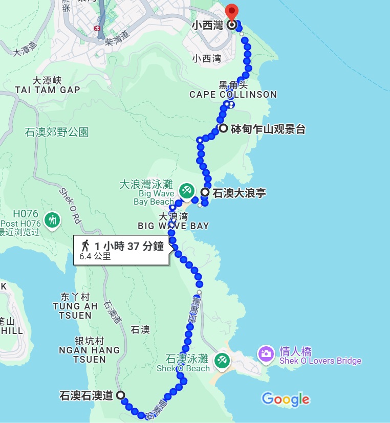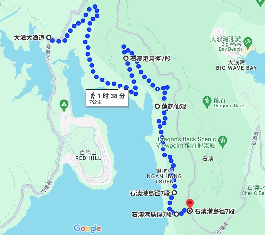 - 路線︰赤柱➡老虎山引水道➡大潭篤大壩➡土地灣➡大浪灣➡小西灣