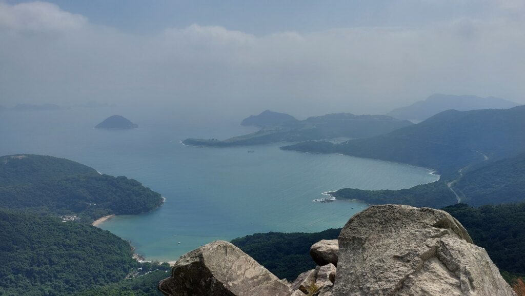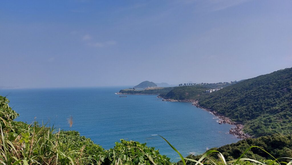 沿山徑上升,登上山坡後,先到達廟仔墩頂。這是觀看釣魚翁最佳的地點,還可遠觀相思灣。