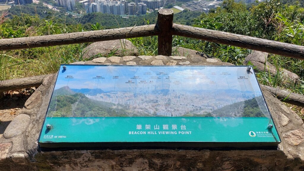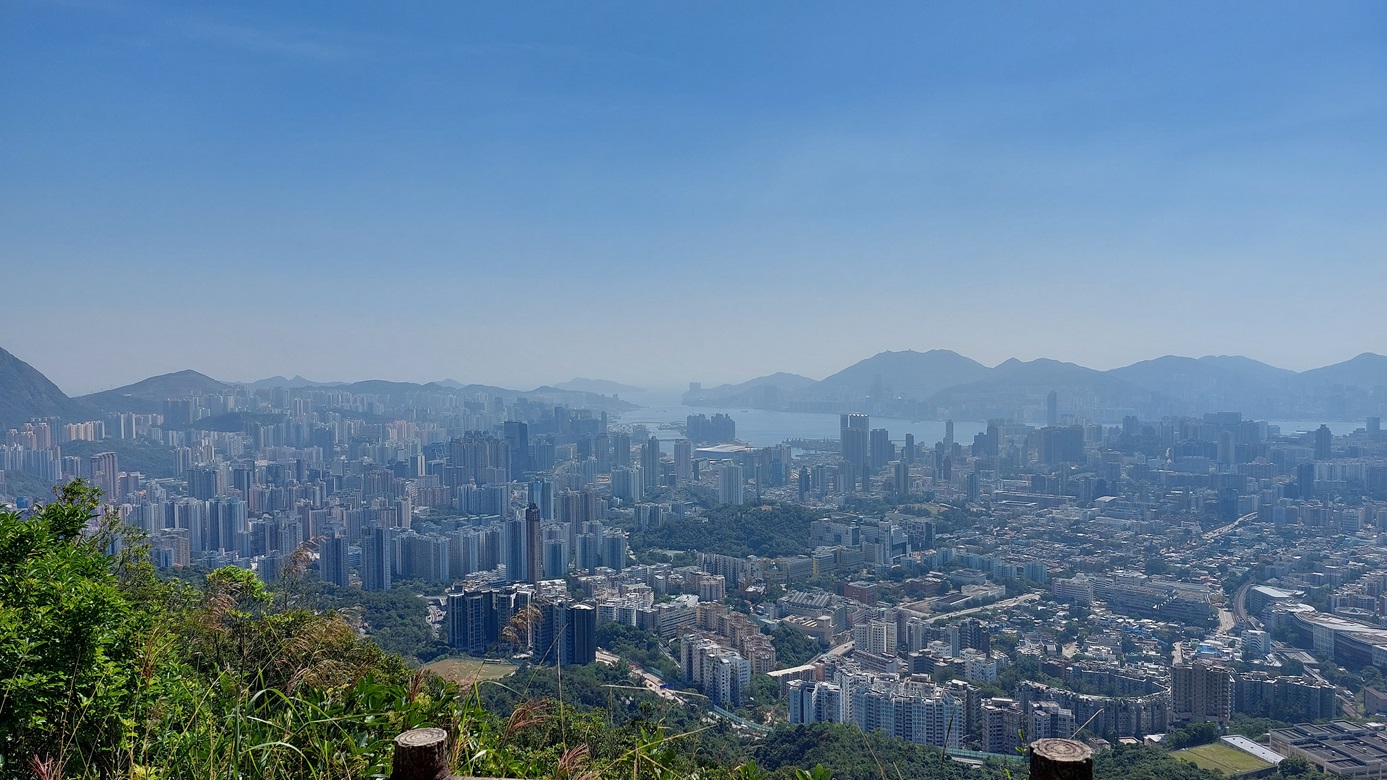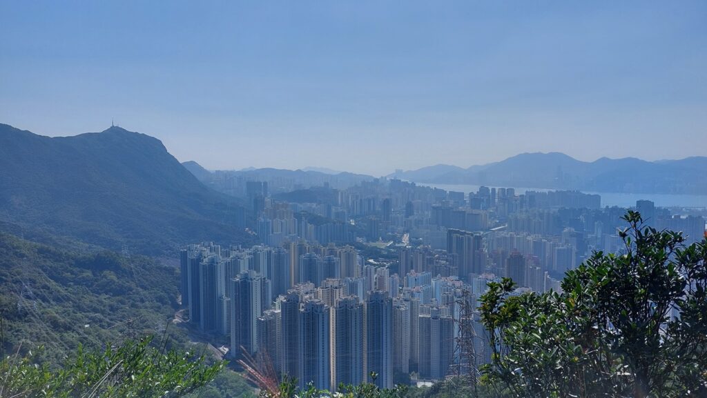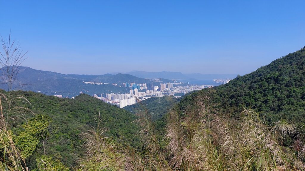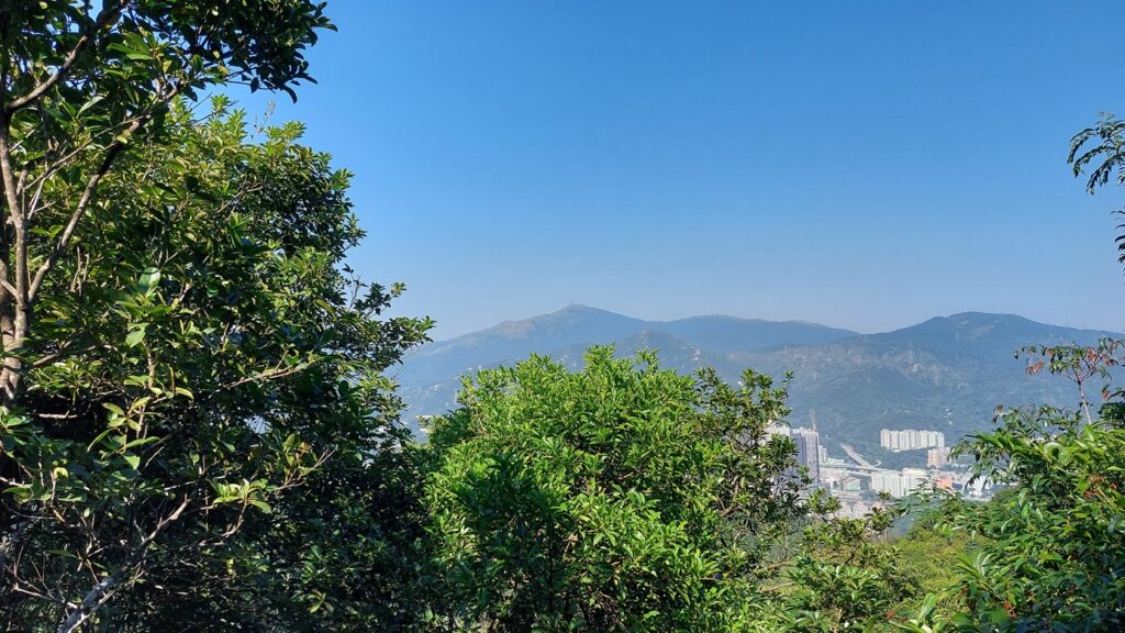 由此隨著指示牌右轉入山徑,在高點可下瞰見葵涌邨,同時亦可遠眺獅子山。