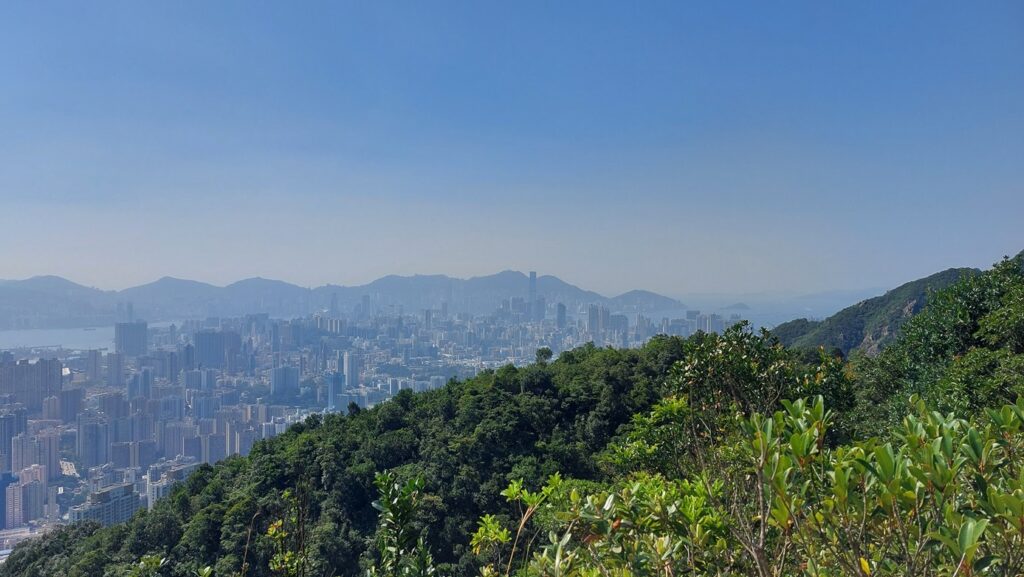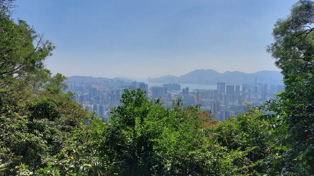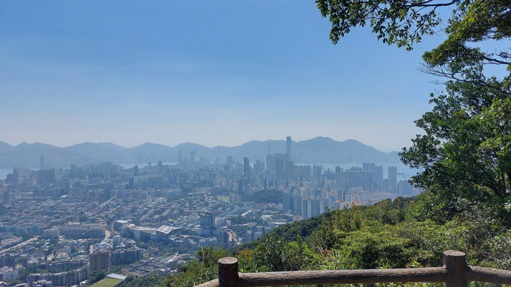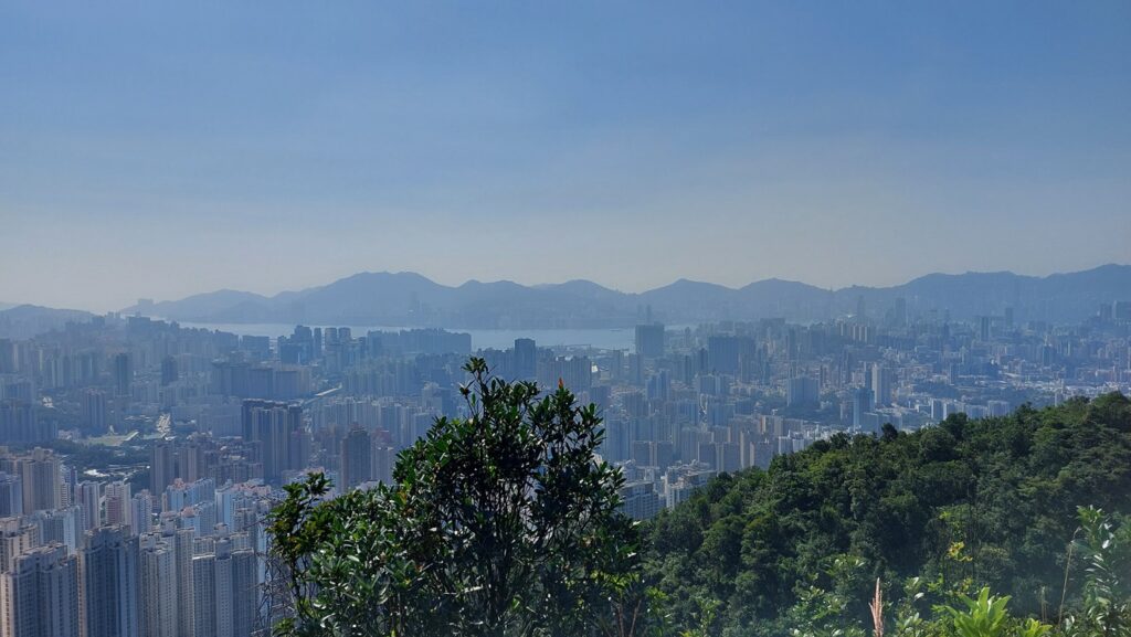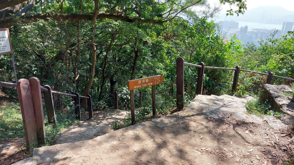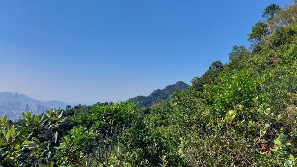 由此隨著指示牌右轉入山徑,在高點可下瞰見葵涌邨,同時亦可遠眺獅子山。