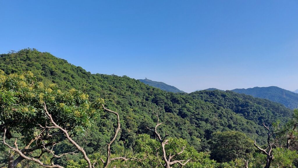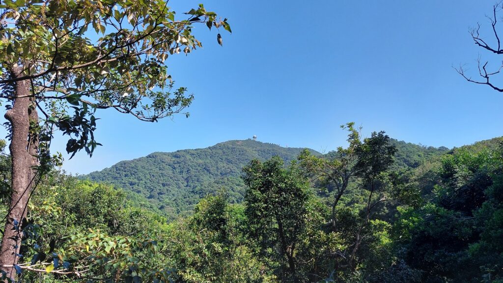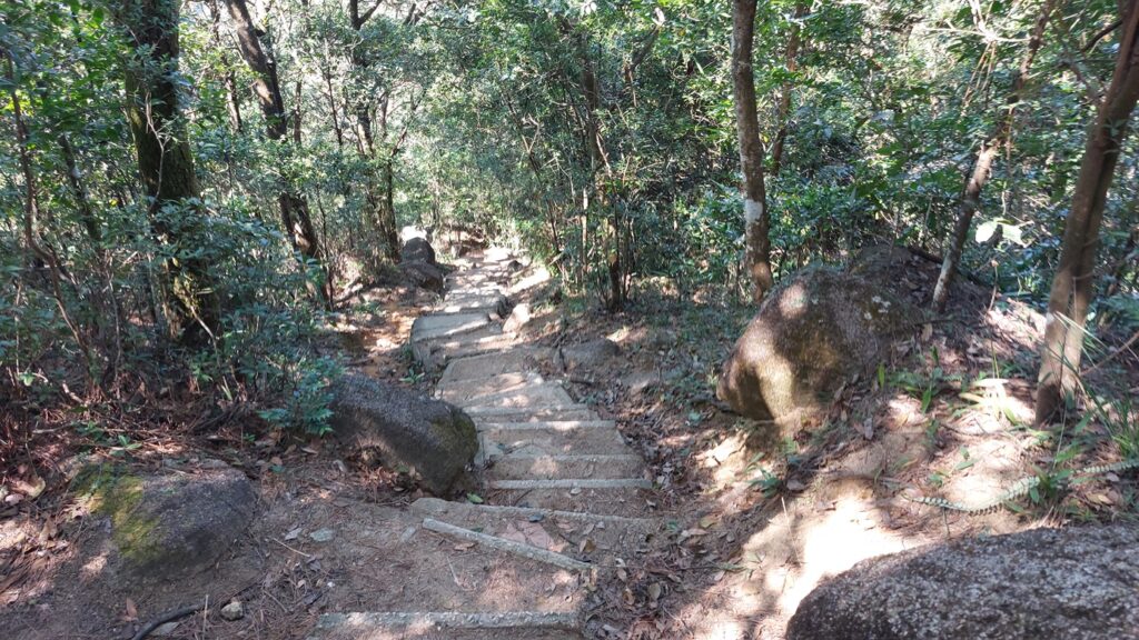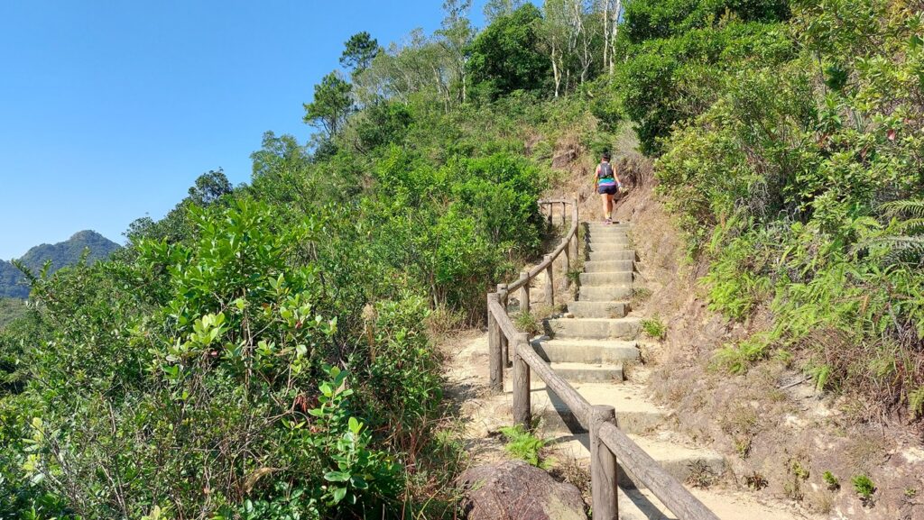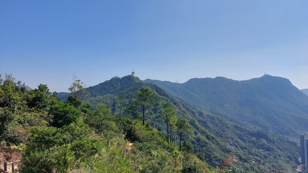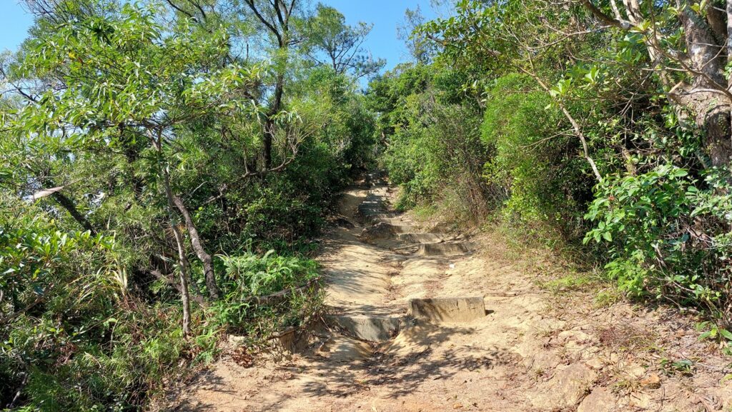 沿徑往筆架山進發,稍作上落後便要隨徑急升,經筆架山觀景台,到達筆架山頂發射站。