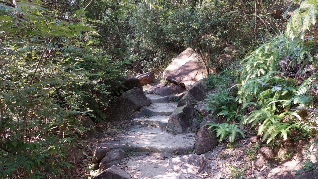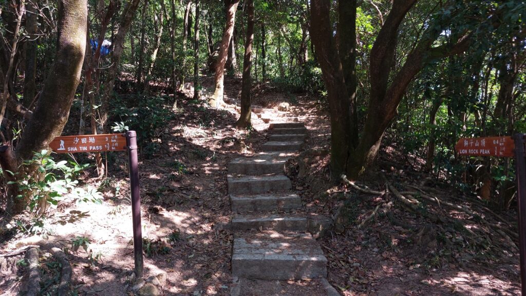 進入獅子山郊野公園。路徑初段多是梯級,一段較長的上坡,攀登至獅子山頂的支路。这是本段最辛苦的路段。沿徑前行,轉為平緩。走過一段林蔭小徑後,便會到達香港回歸紀念亭。