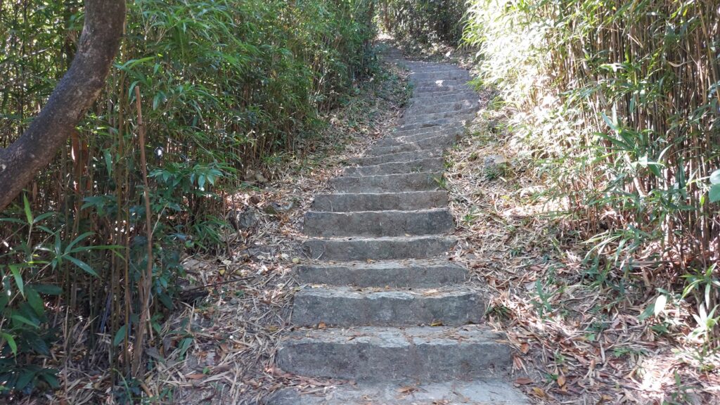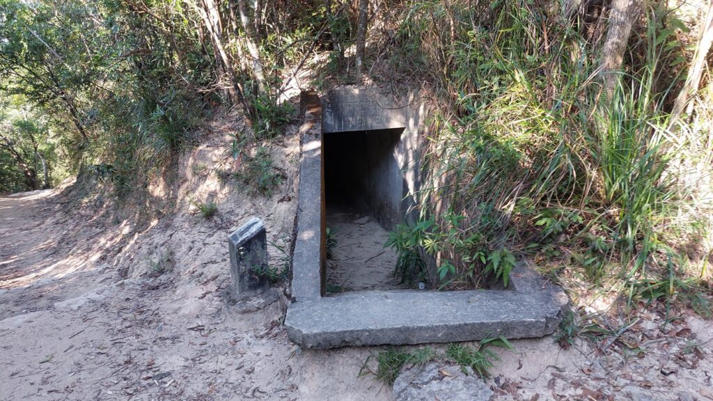 稍後沿徑往下走,繞過孖指徑。金山及孖指徑一帶是二次大戰期間英軍為防禦日軍入侵香港而建的醉酒灣防線中的軍事據點之一,現時仍有不少軍事設施遺跡。