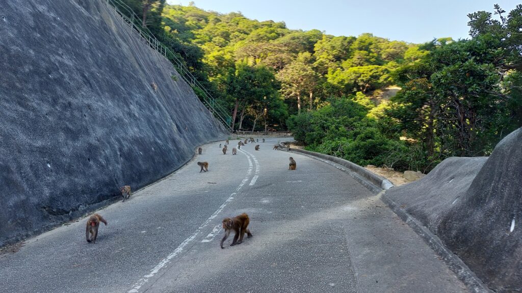 金山,也叫馬騮山,因馬騮多而得名。大概是因為金山樹木高大茂密,且食物水源充足,適宜猴群生存。公園內有公告警示,不要喂食馬騮,不要在馬騮面前食物,也不要讓物品離身,以免被馬騮搶走,造成損失。