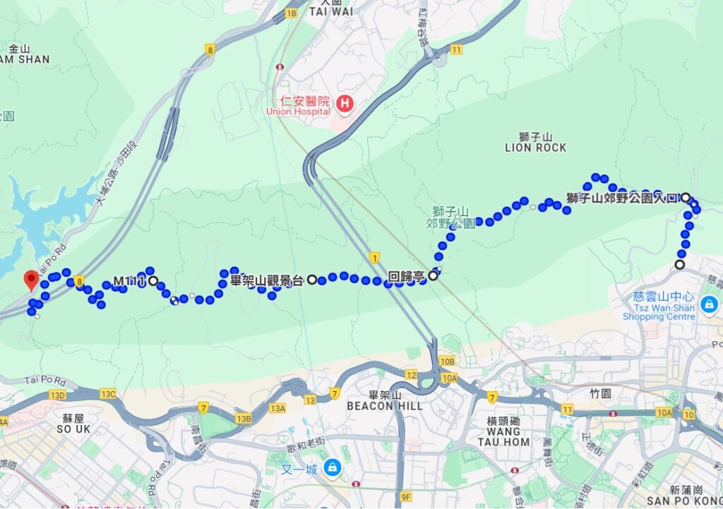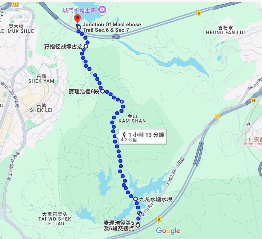 - 路線︰ 沙田坳➡獅子山➡筆架山➡鷹巢山➡九龍水塘➡金山➡孖指徑➡城門水塘
