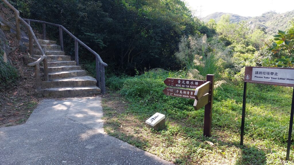 過M181不遠,就會看到千島湖清景台的標志,照指引行約200米即可到達觀景台,這是欣賞大欖涌水塘的絕佳位置。欣賞打卡後原路返回麥徑。