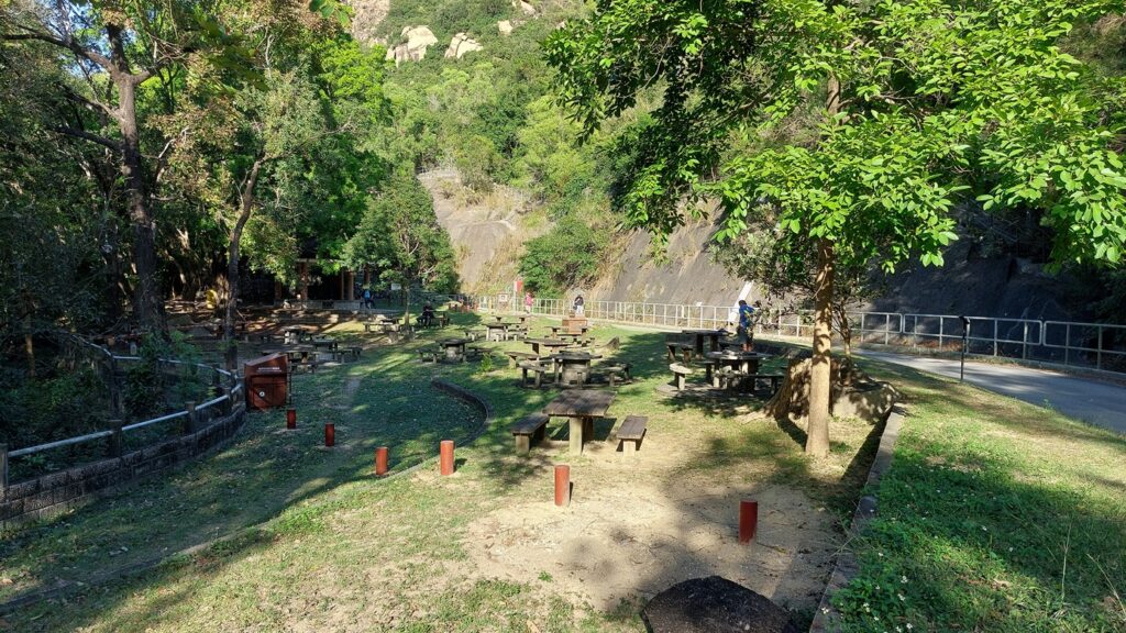 沿著車道走至田夫仔營地旁,結束麥理浩徑第九段的行程。如不續行,則可沿元荃古道下到深井離開。
