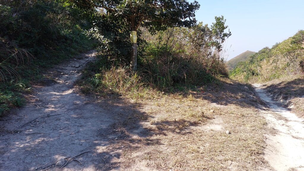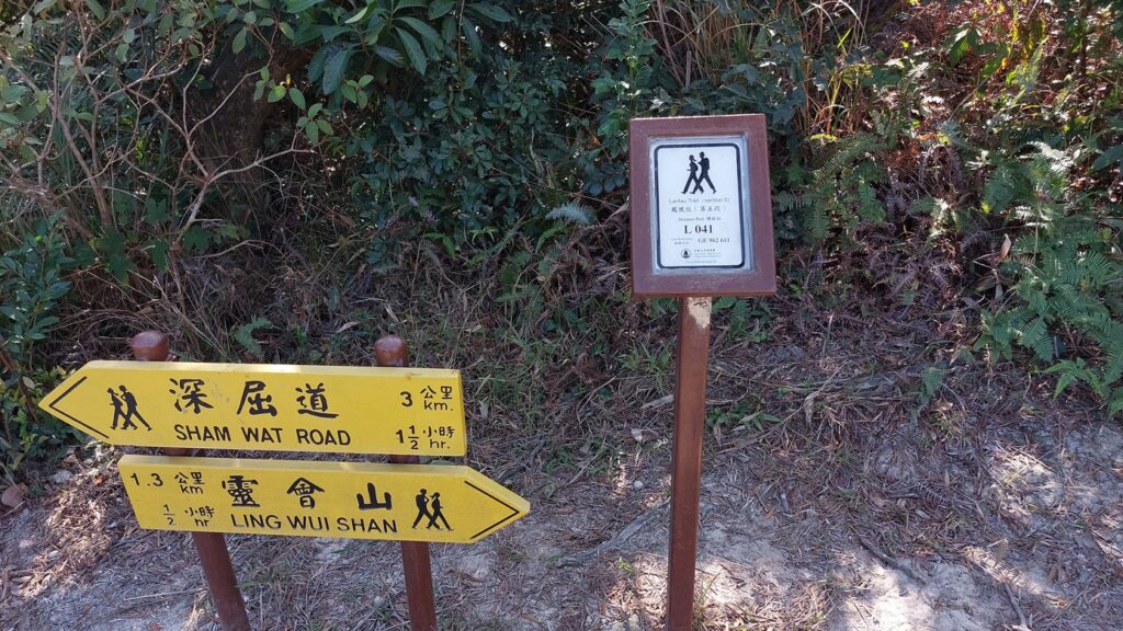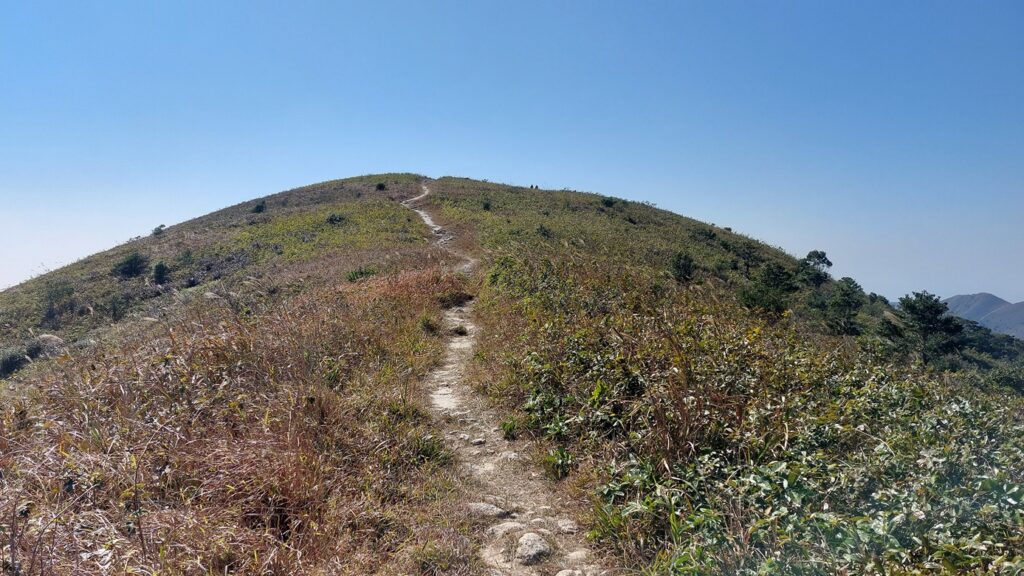 由此下降一段,便要行走一段較費力的石級,攀上羌山頭。過羗山頭山腰,往前行一段後,再登上羗山頂。後循山徑行走,過羗山尾後至羗山坳,這是個三岔路口。依著鳳凰徑指示往靈會山方向(左走靈會山,右近路直行大澳),走過一片丘陵地帶後,到達靈會山頂。下山後一路按指示前行,至萬丈布。