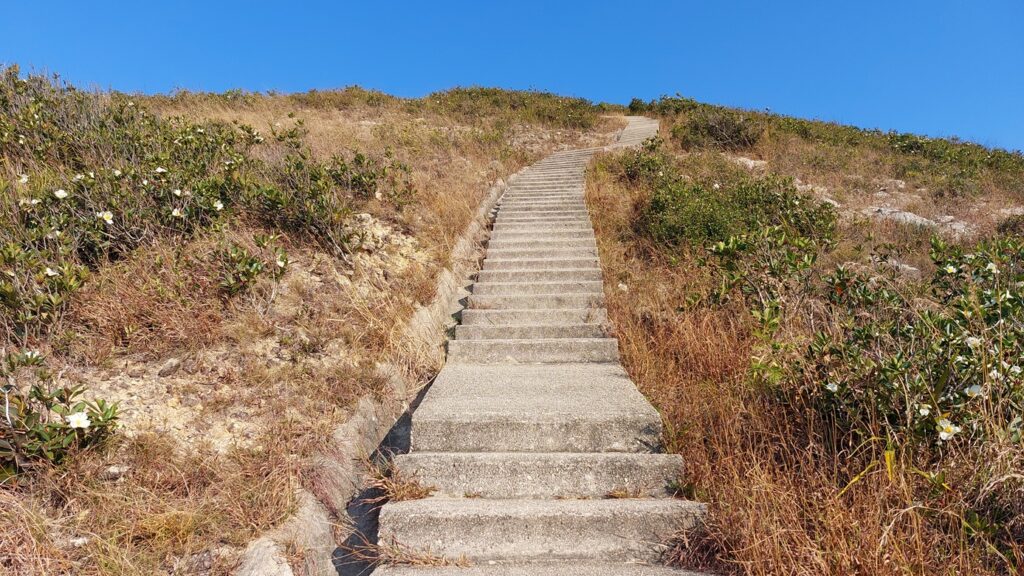 首段要攀著名的孖崗山超長梯,升高約350米;次段上爬紫羅蘭山,升約300米;第三段升渣甸山及小馬山升高約各150米。落山的高度跟爬升高度相若,也近千米,完成全程相當辛苦。如果想輕鬆些,還是分段行較穩妥。