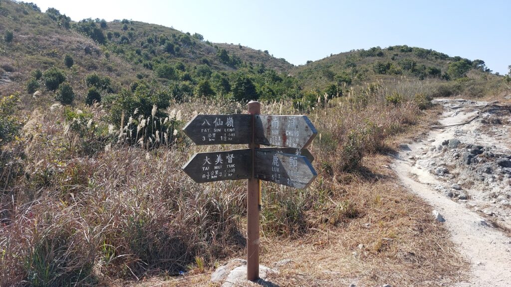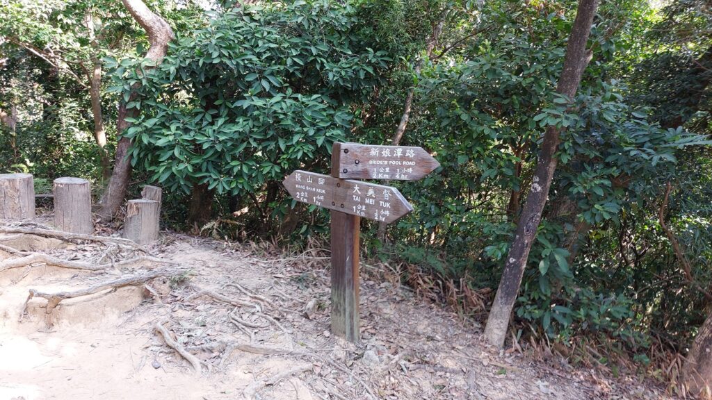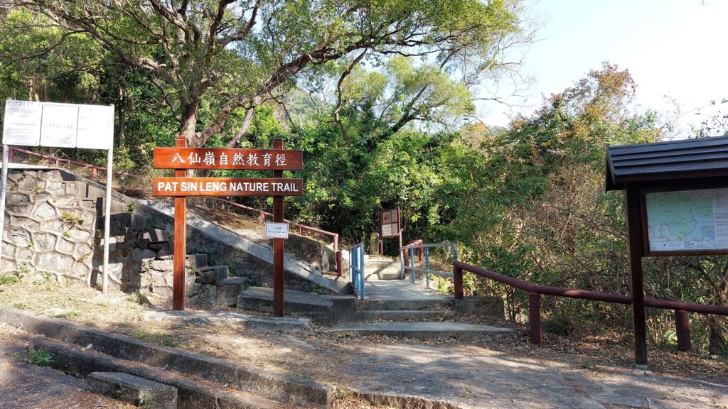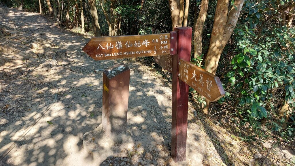 大美督落車後,向東沿汀角路行至與新娘潭路交界處,向左即是八仙嶺自然教育徑起點。沿八仙嶺自然教育徑一路向上,經春風亭,繼續上攀。過少許平緩路徑後,續升至W徑9與10段交接點。由此離開八仙嶺自然教育徑,轉入W徑上攀仙姑峰。這段是本程最辛苦的路段,爬升約500米。