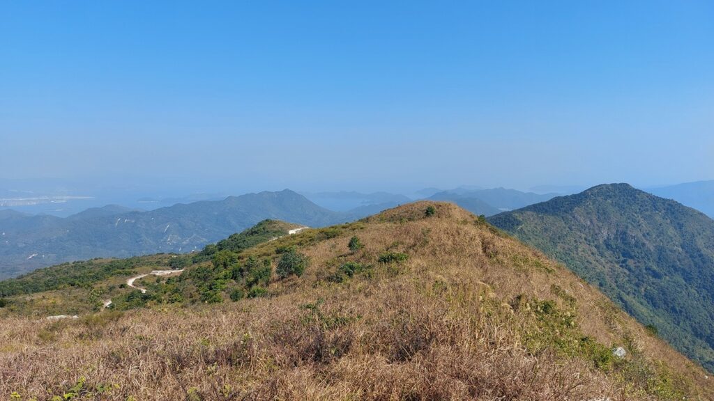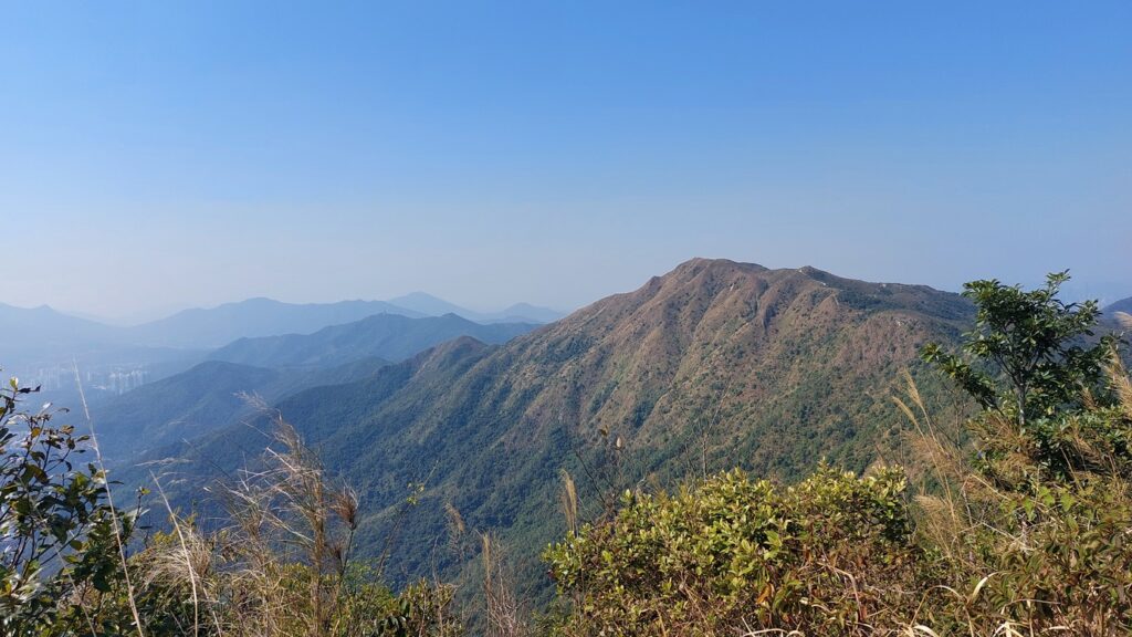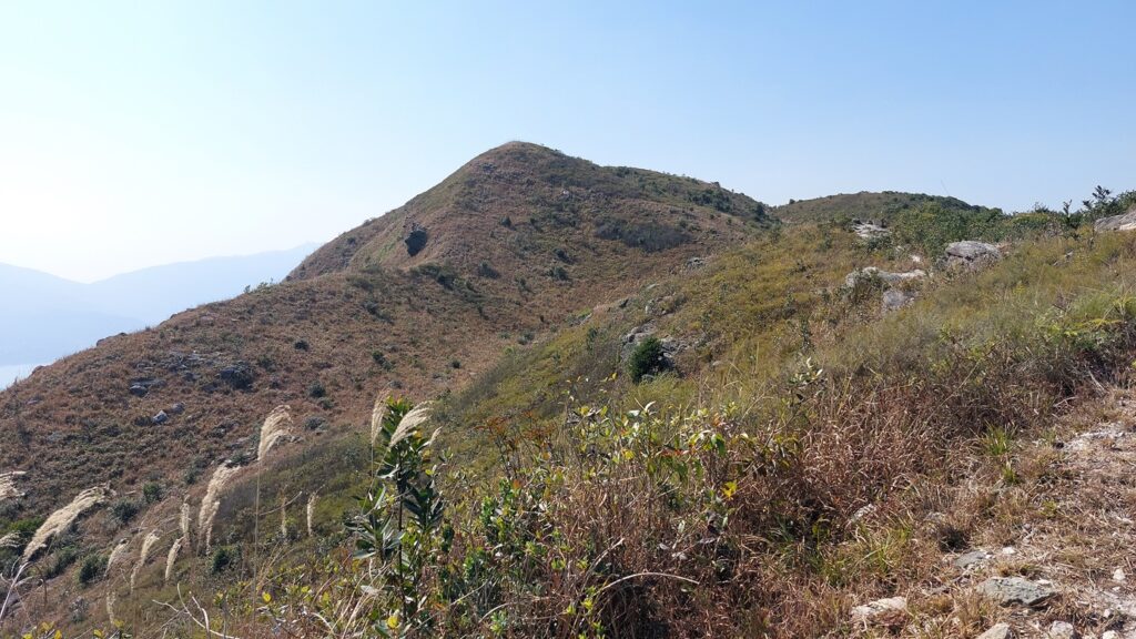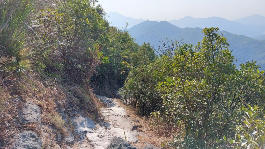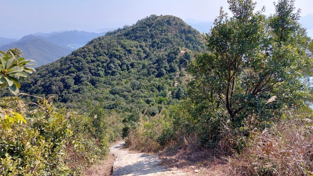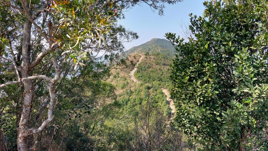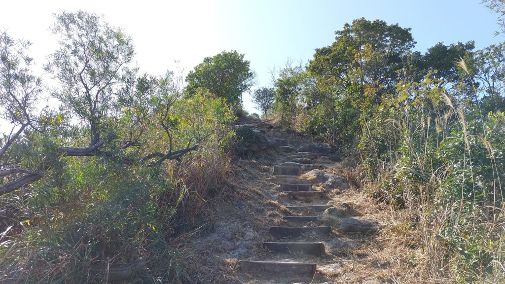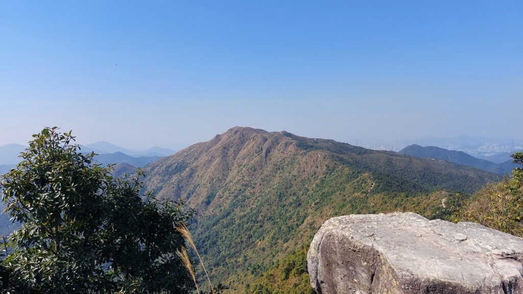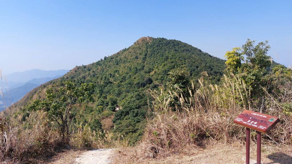 繼續前行,往黃嶺(639m)前進。黃嶺猶如一道屏障升起,氣度雄邁。衛奕信徑過黃嶺而不登頂,只是黃嶺是本程最高峰,當然要上頂。至黃嶺峰有岔路上頂,不過百米但陡峭。登頂打卡,返回繼續前行。