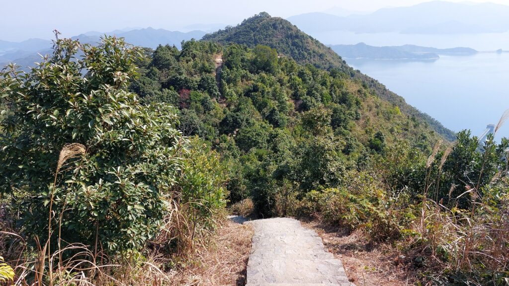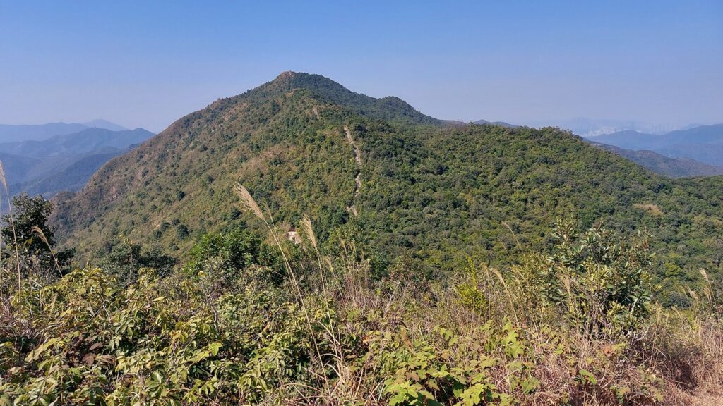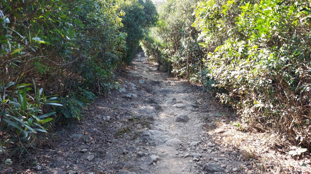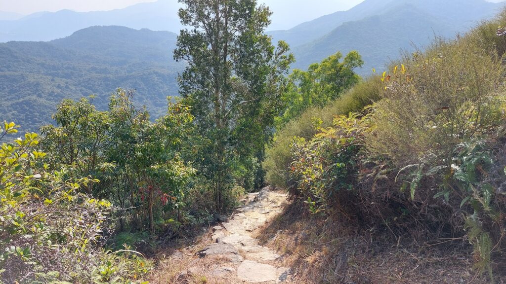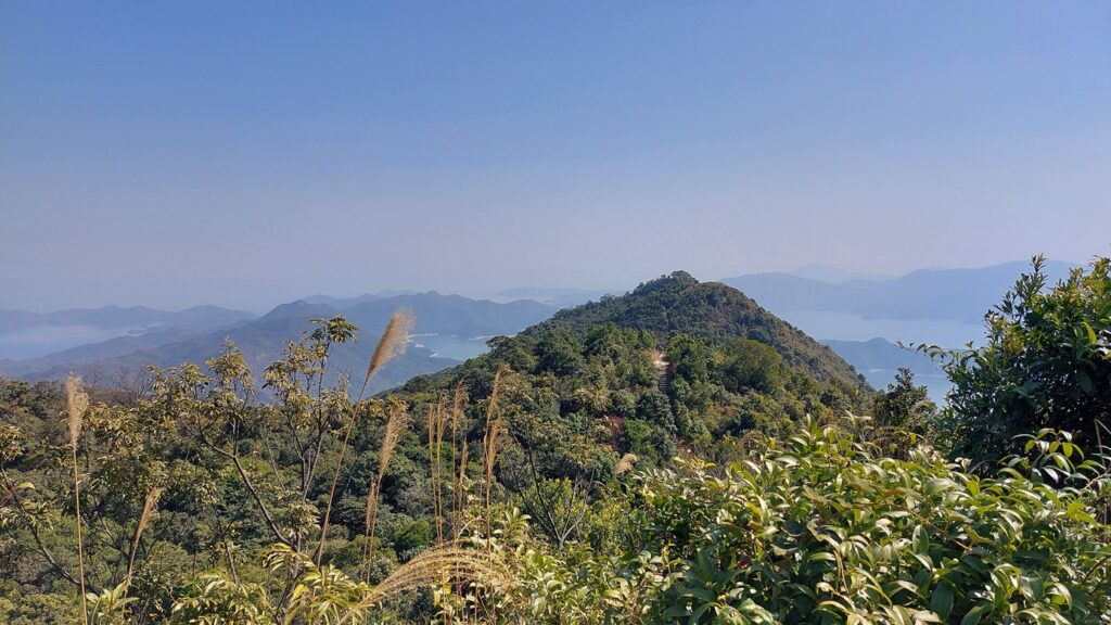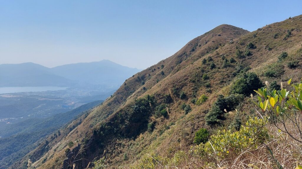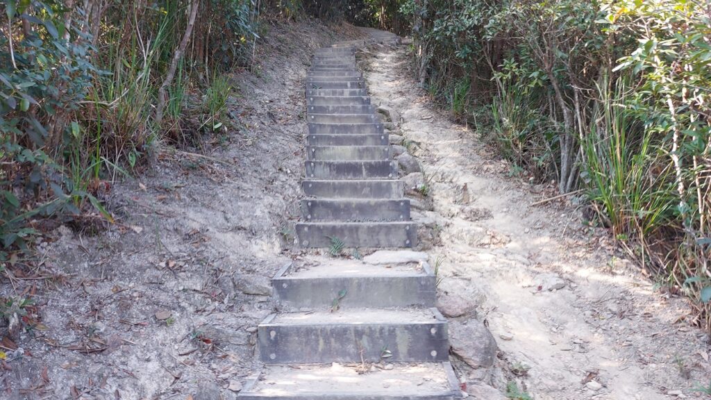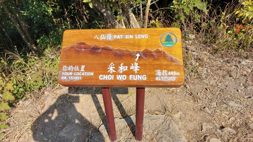 繼續前行,往黃嶺(639m)前進。黃嶺猶如一道屏障升起,氣度雄邁。衛奕信徑過黃嶺而不登頂,只是黃嶺是本程最高峰,當然要上頂。至黃嶺峰有岔路上頂,不過百米但陡峭。登頂打卡,返回繼續前行。