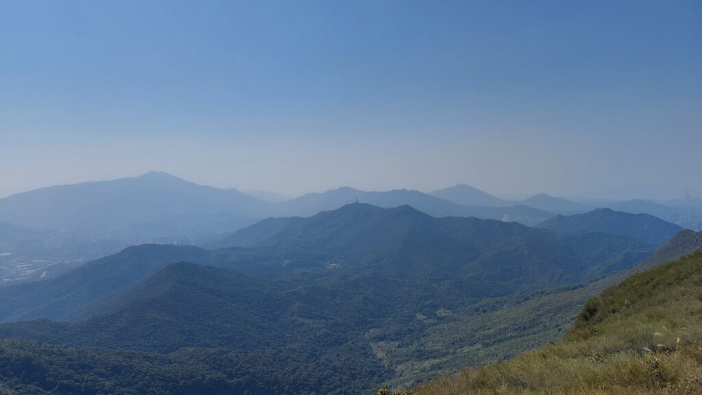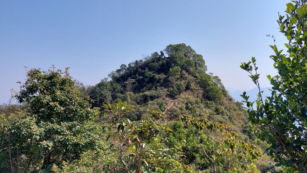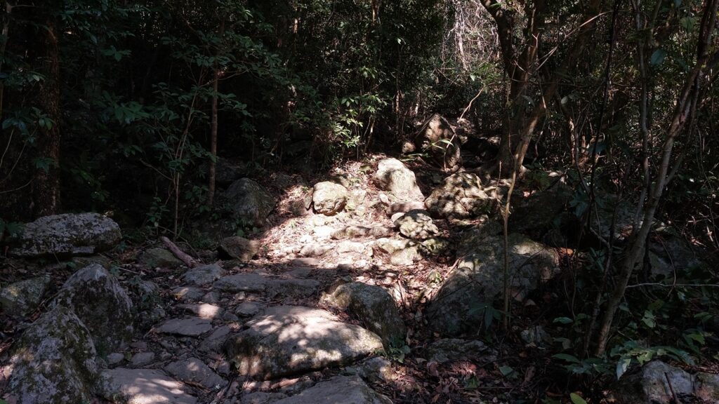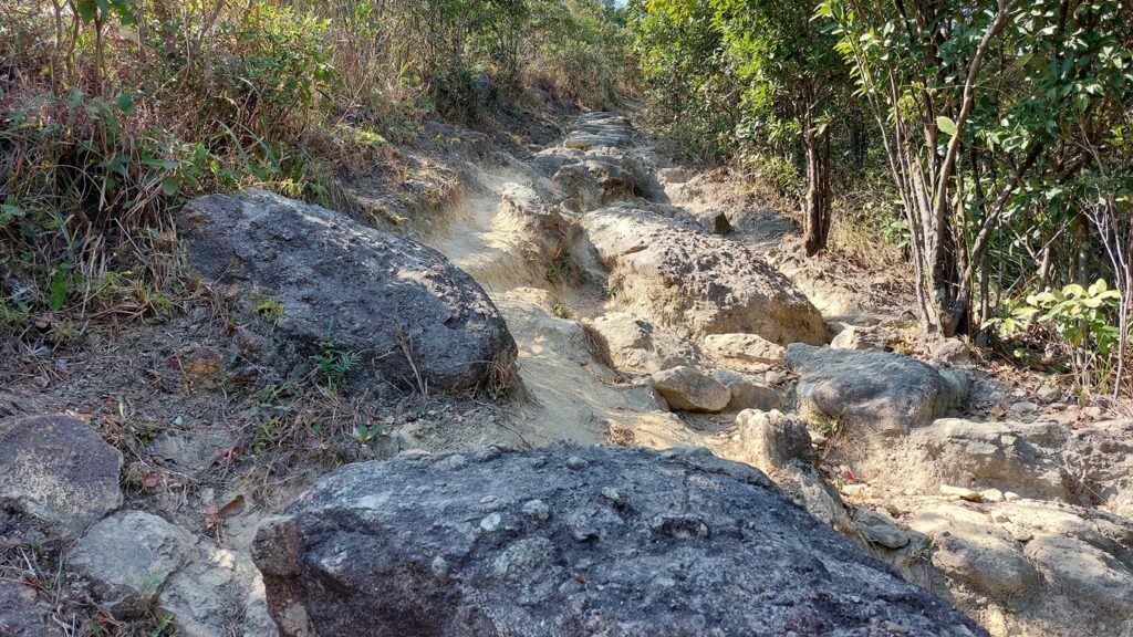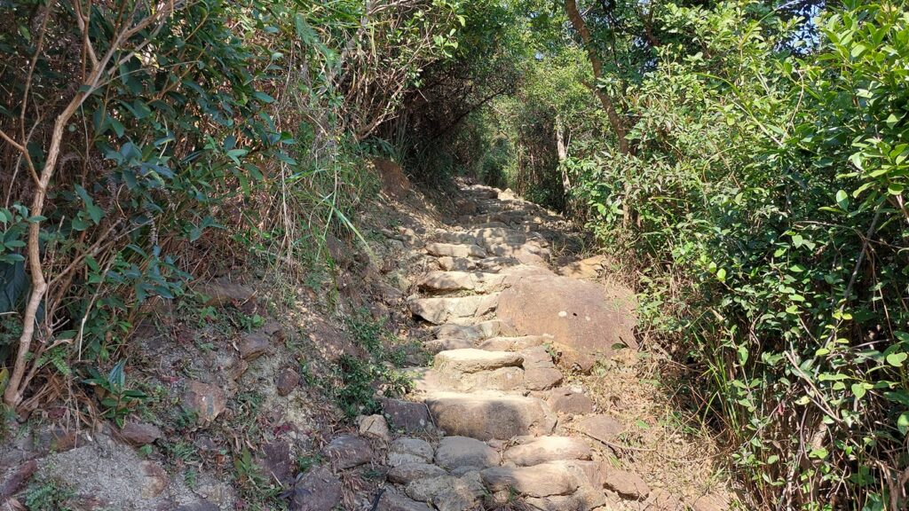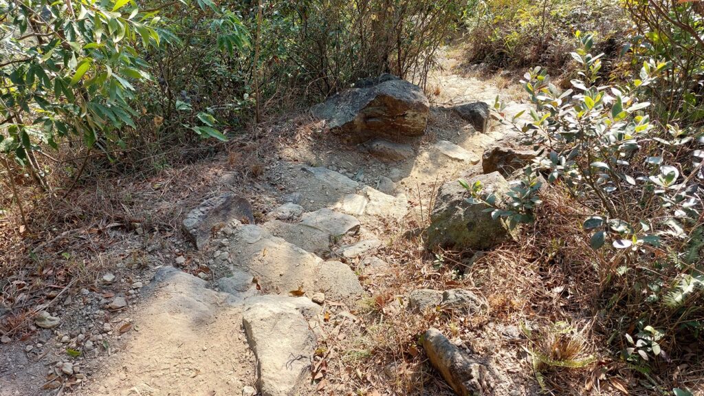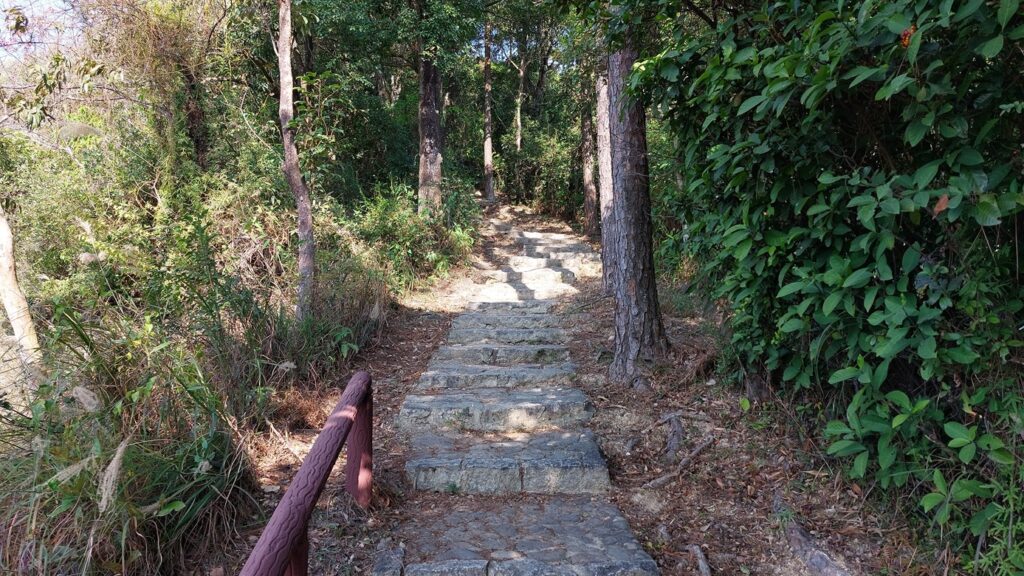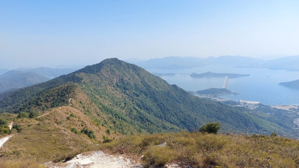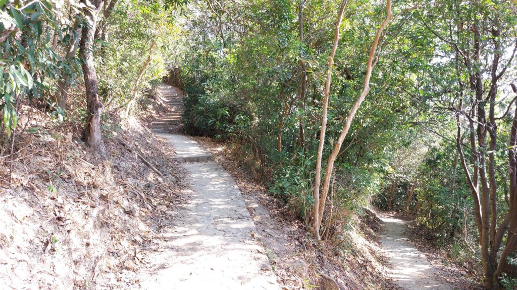 繼續前行,往黃嶺(639m)前進。黃嶺猶如一道屏障升起,氣度雄邁。衛奕信徑過黃嶺而不登頂,只是黃嶺是本程最高峰,當然要上頂。至黃嶺峰有岔路上頂,不過百米但陡峭。登頂打卡,返回繼續前行。