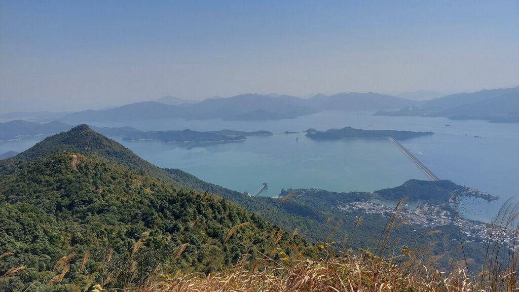 過黃嶺,即是屏風山(550m), 路線沿崖邊蜿蜒,視野極廣,可從高處下瞰鶴藪水塘全貌。如要上屏風山頂,需沿崎嶇陡峭的山徑上攀,多數行人不會上屏風山頂。