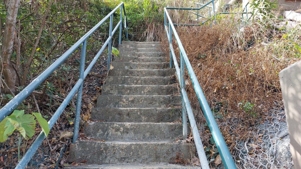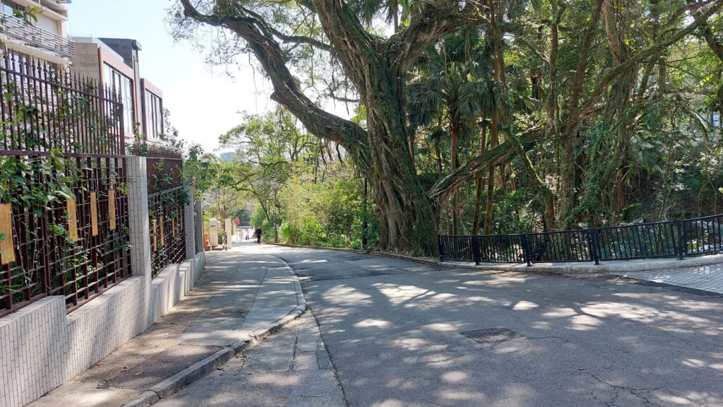 香港大學站A2出口,穿行人天橋,過黃克竸樓,前面樓梯落轉右前行,至周亦卿樓前左行幾步,上樓梯,沿龍虎山健身徑開始上山。