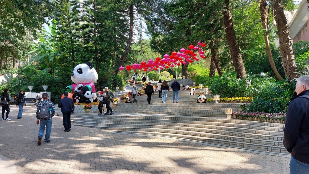 在凌宵閣觀景打卡,還可逛下山頂廣場,或食嘢或休息。然後開始下山。先後沿芬梨徑、白加道、漆咸徑、蒲魯賢徑、梅道、高化利徑、纜車徑、香港公園,至金鐘站結束。