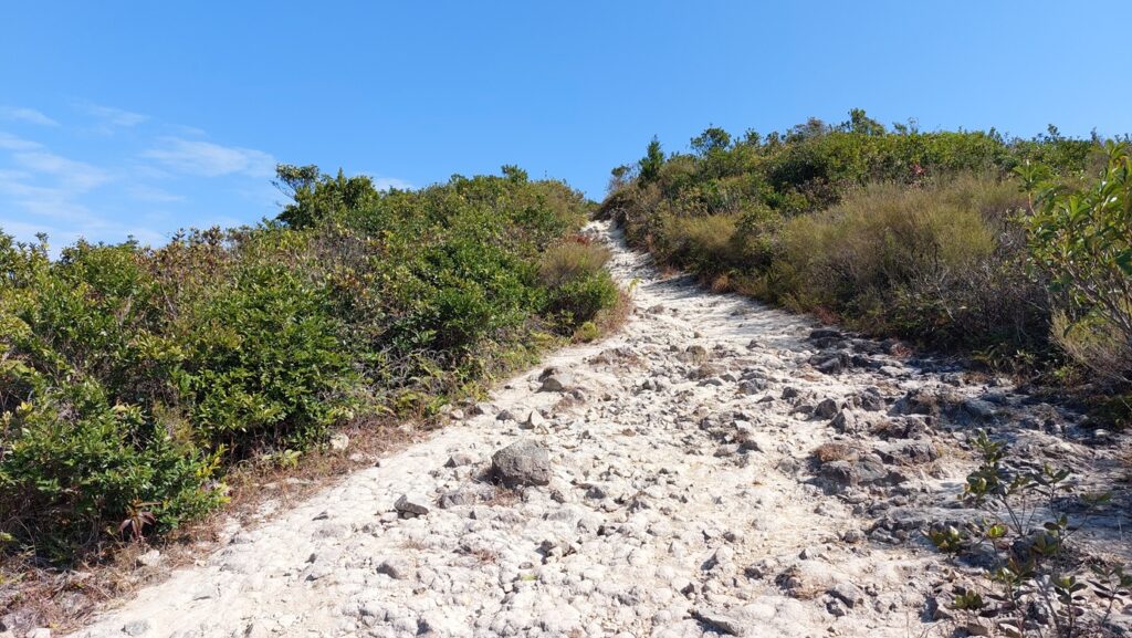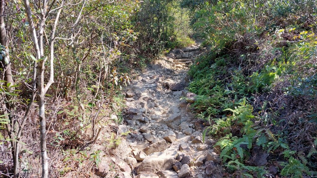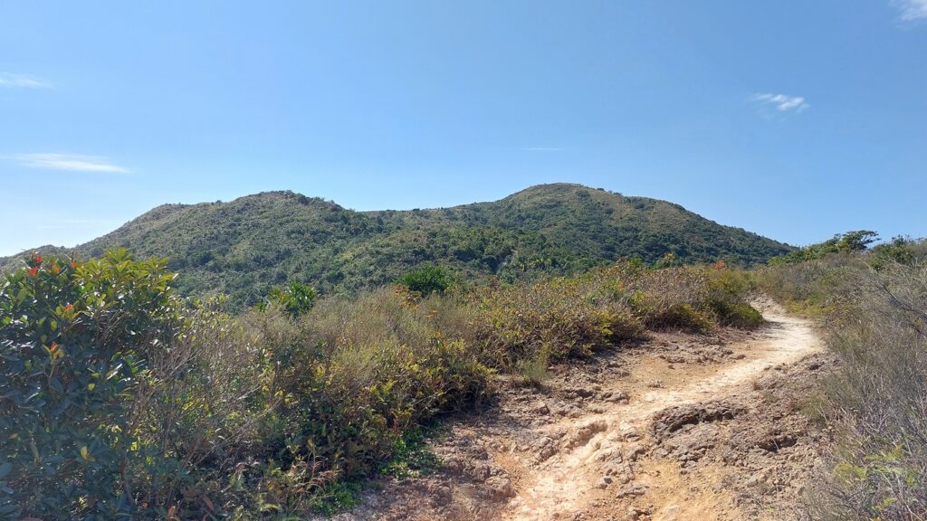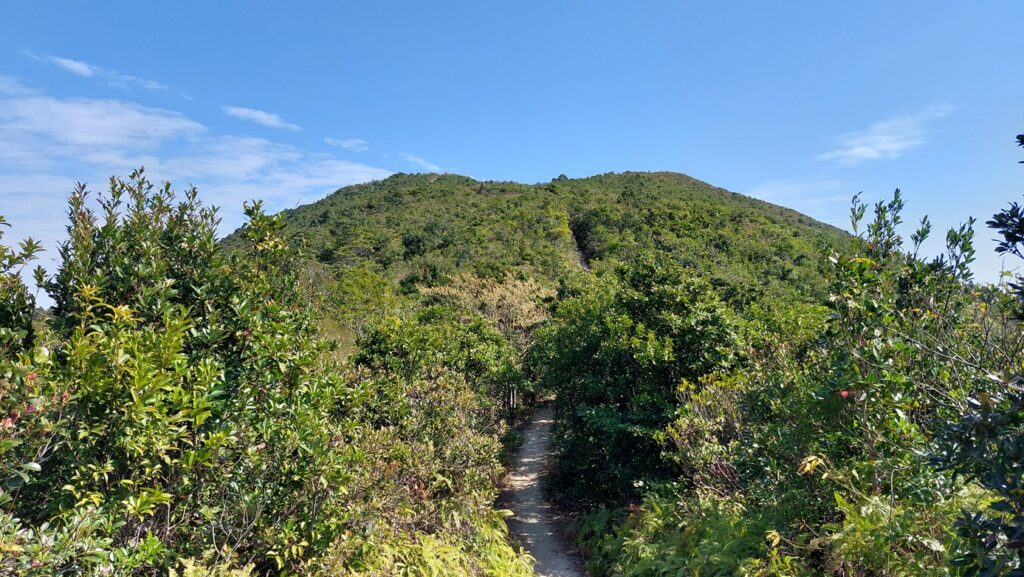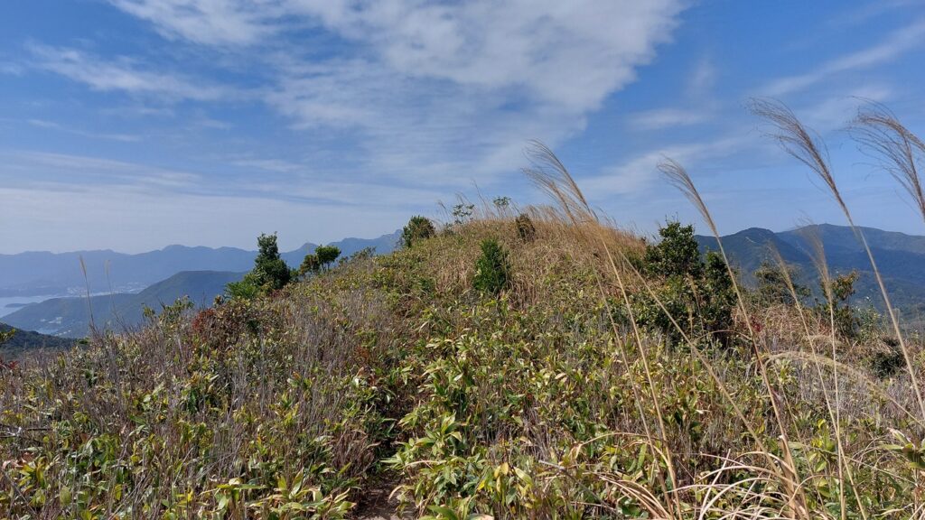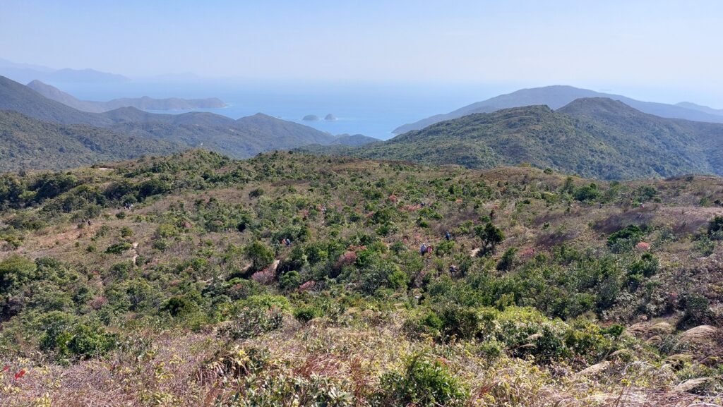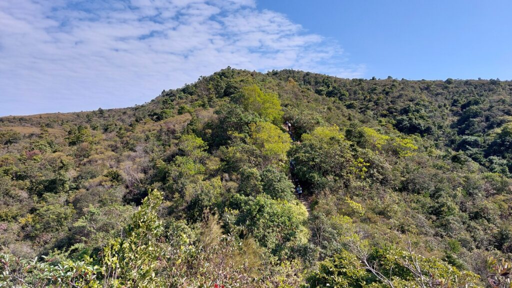 賞花後,順路登上牌額山。牌額山高度與大枕蓋相若,上登難度不大,是觀賞赤徑、大蚊山及蚺蛇尖的好地方。