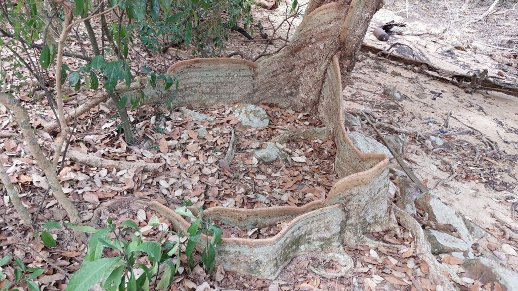 入荔枝窩村前可先登上路邊的荔枝窩觀景台,再一路漫遊村前的泥灘和紅樹林。平整的觀景步道,還有景點介紹牌,各種奇特植物,特別是魚藤。至村口,過橋便見學校,校側公廁旁的道路可往著名的空心樹,可惜本人卻錯過了。再進村前參觀村落,村前的護村河,村口的大榕樹,村前的廣場、涼亭、寺廟、村大門等。然後,再沿村右邊經公廁繞行,邊行邊觀賞樹中的建築。至村後就會看到荔枝窩特別地區的標牌,可沿路觀賞五指樟、霸王榕。最後,續前行,沿荔谷古道前往谷埔。