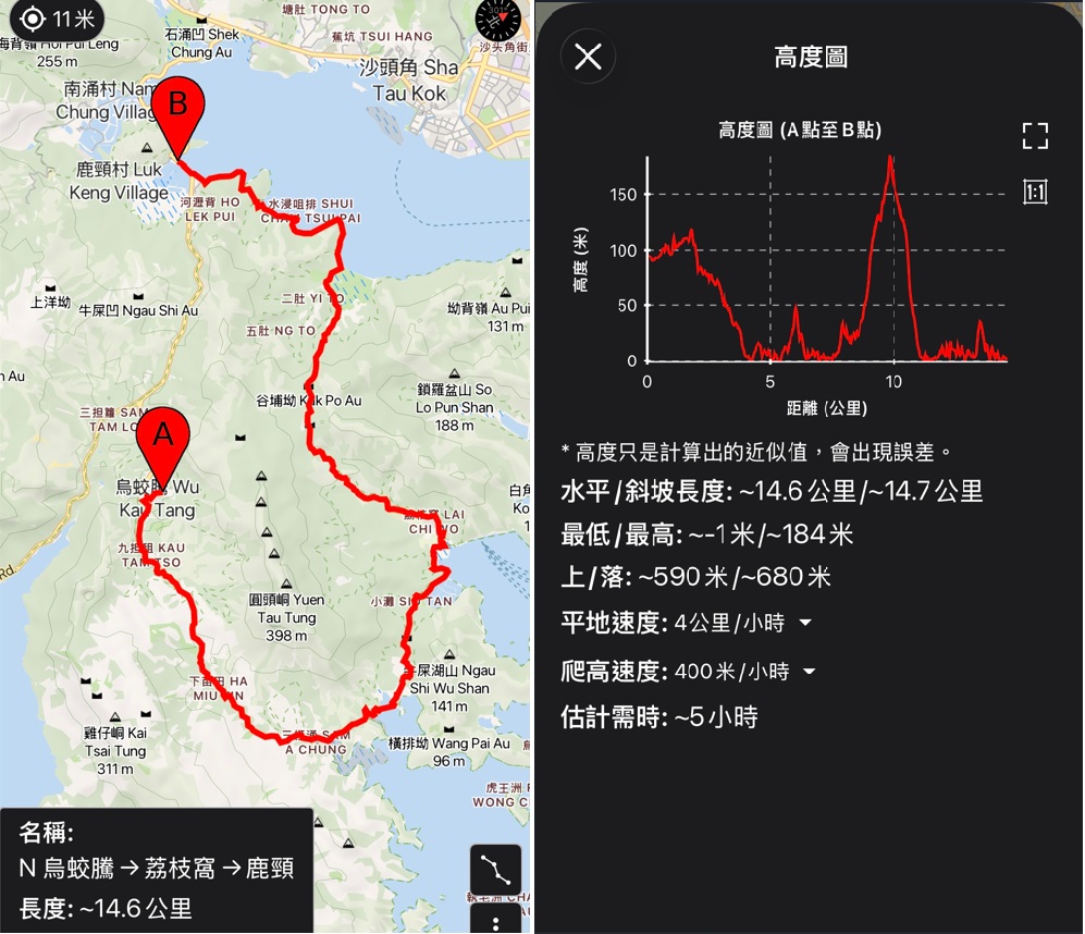 - 提醒:烏蛟騰至荔枝窩是熱門郊遊路線,而荔枝窩至谷埔古道路段則少行人
