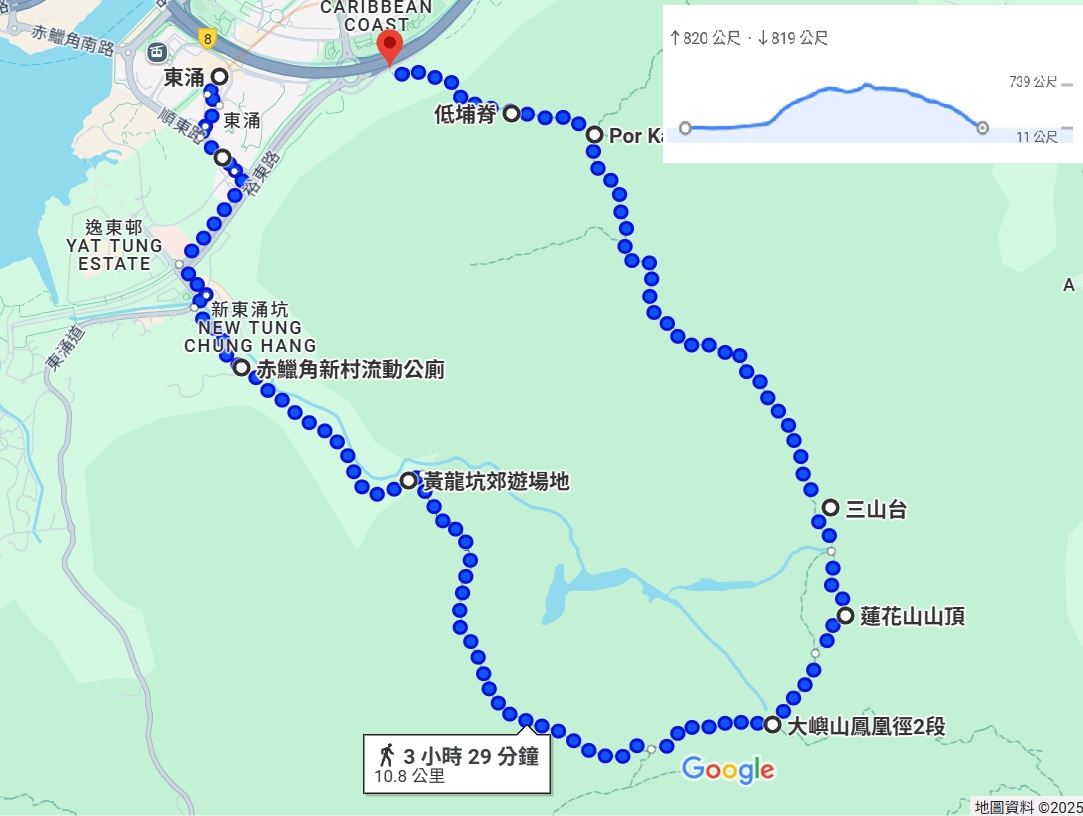 T 東涌➡黃龍坑➡雙東坳➡蓮花山➡三山台➡低埔脊➡東涌