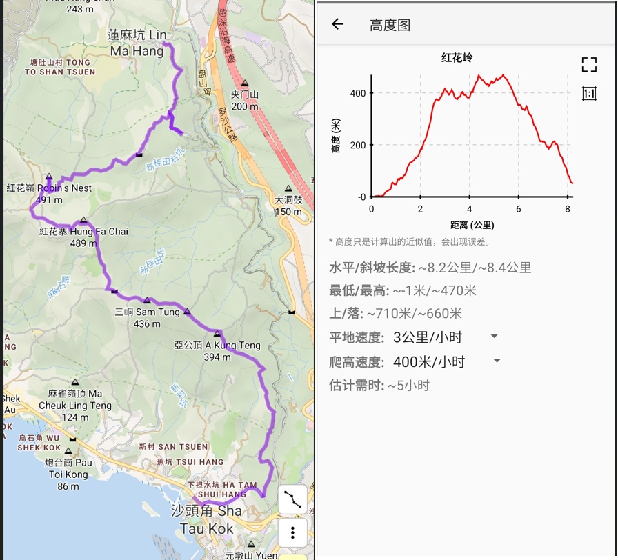 - 路線︰ 担水坑➡山咀村路➡亞公頂➡二峒➡三峒➡紅花寨➡紅花嶺➡蓮麻村