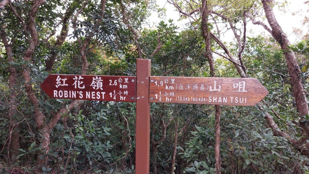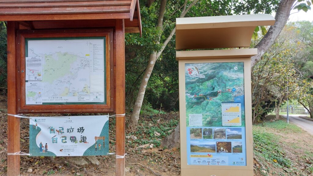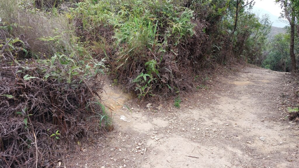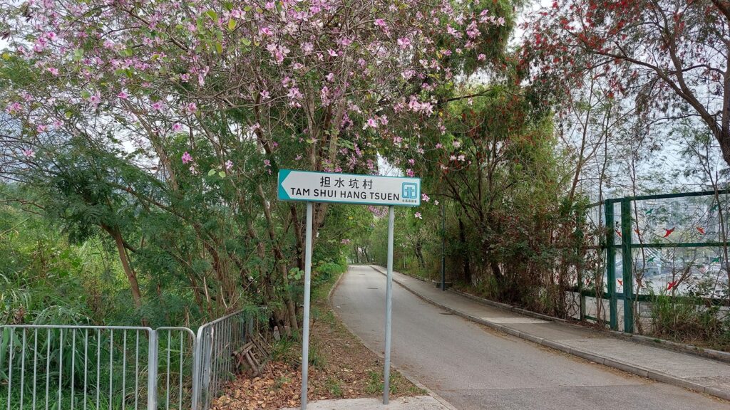 担水坑下車後,沿右邊的山咀村路直走,約30分鐘後便可到達紅花嶺郊遊徑入口。