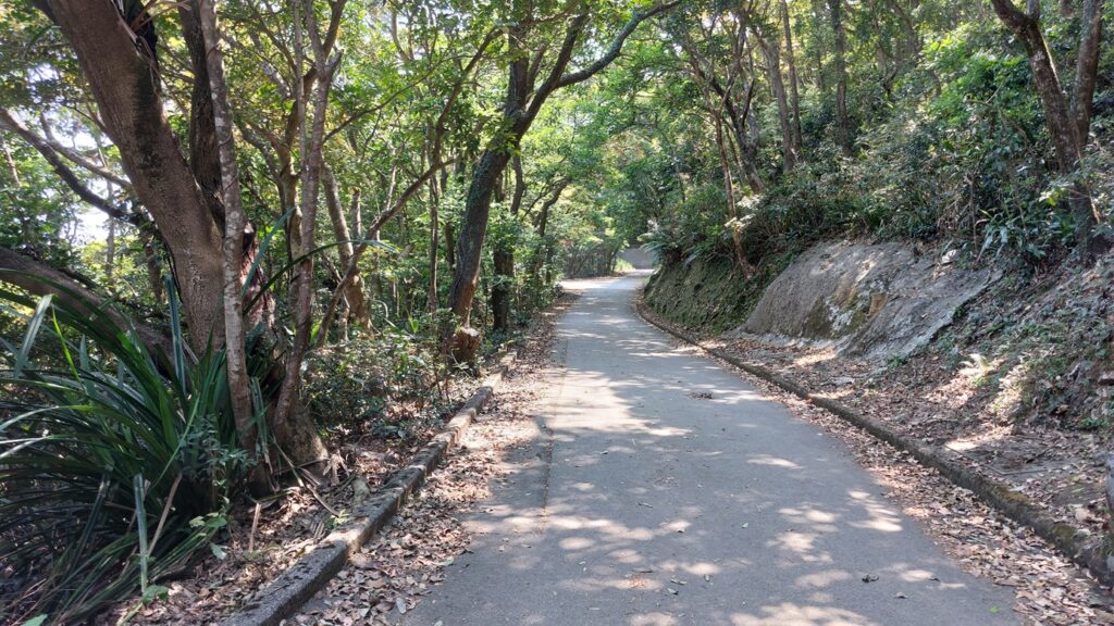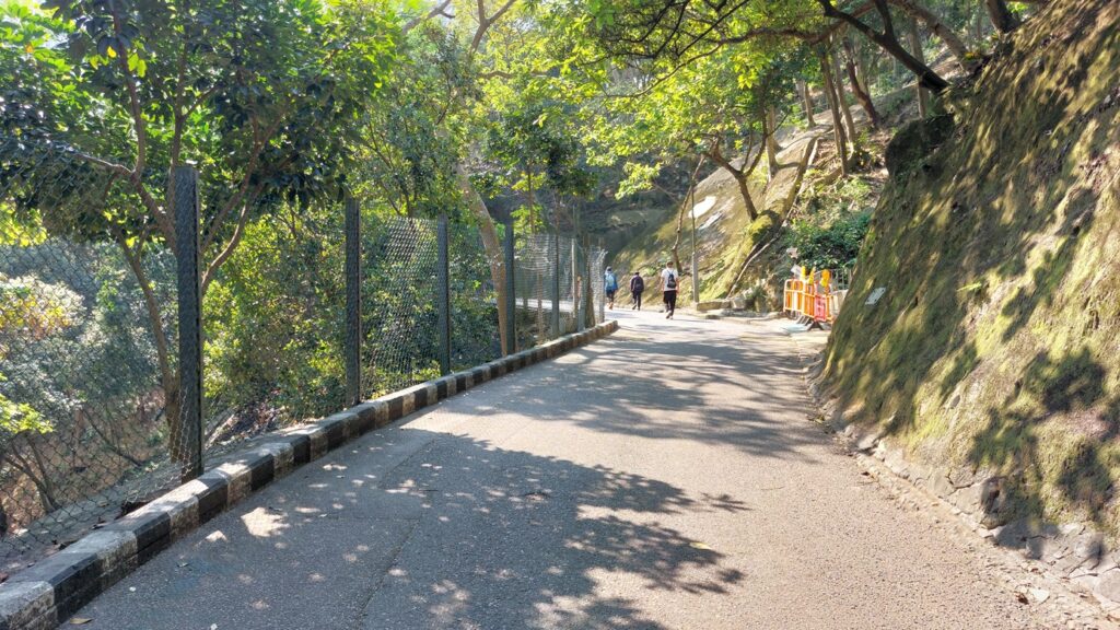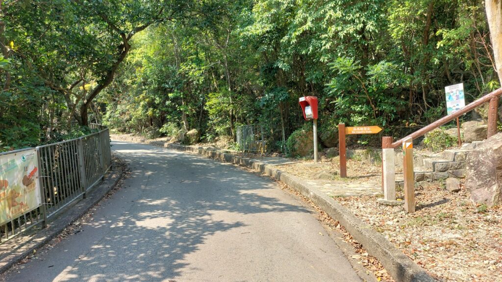 一路下降到柏架山上引水道,路牌標示港島林道美景路段。這是個多路交叉口,在此可選擇不同路徑。直落馬路可很快結束,也可沿野豬徑行至大風坳再落鰂魚涌結束。