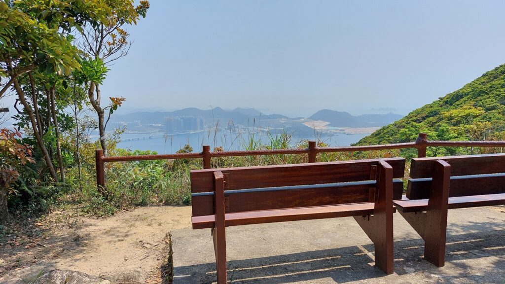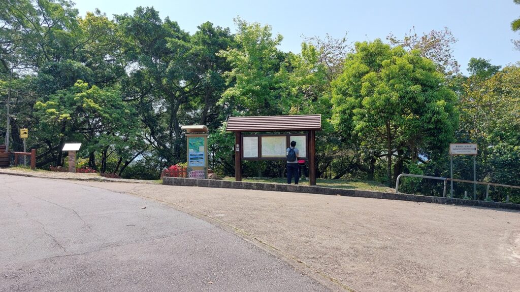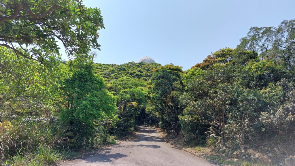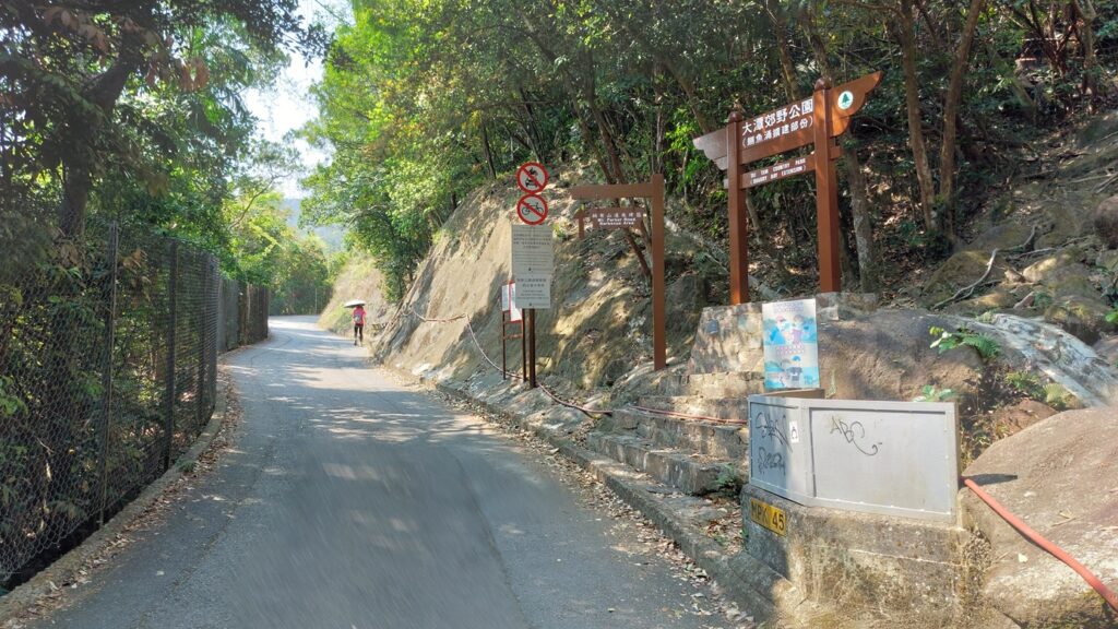 新威园-英皇道下車,過街對面,入柏架山道。沿柏架山道前行至大風坳,再經觀景台往雷達站。
